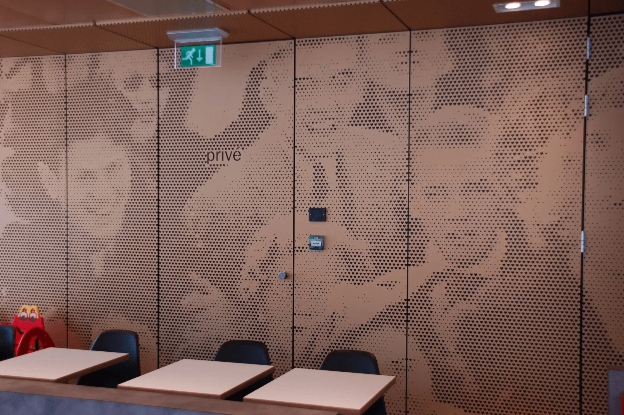 VPT leverde voor het nieuwe pand de goudkleurige gevelbekleding voorzien van een Art-Punch perforatie in een hartjes vorm die een afbeelding weergeeft. In totaal zijn er 484.168 hartjes geperforeerd in 8 verschillende afmetingen. Ook ’s avonds is de afbeelding duidelijk zichtbaar dankzij de (LED-)verlichting in het gebouw.