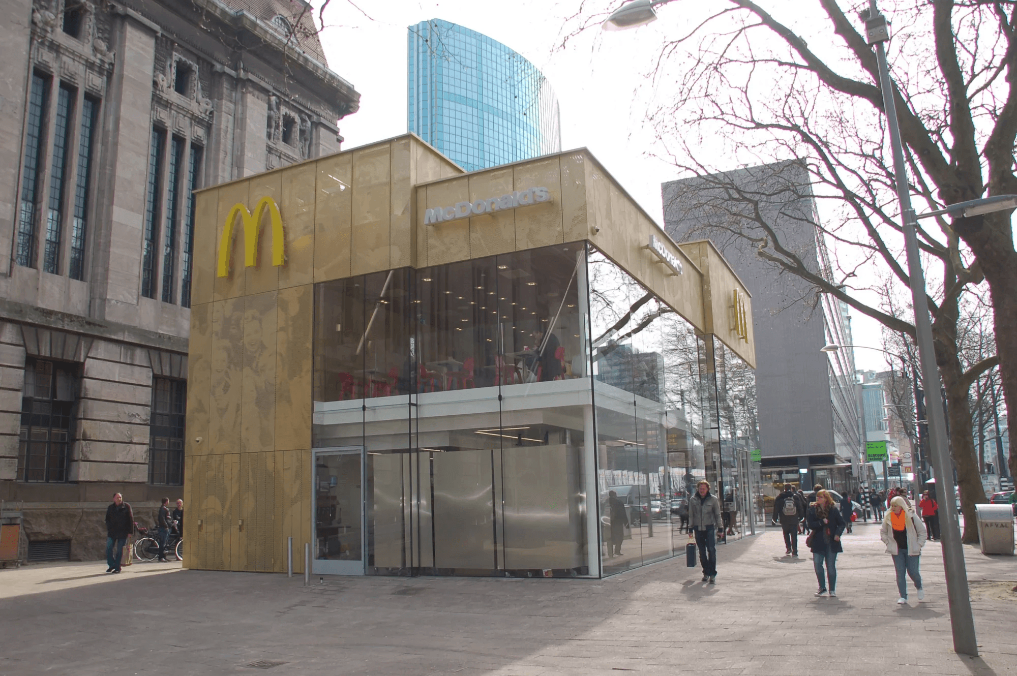 Aan de Coolsingel in Rotterdam kun je niet meer om het nieuwe pand van McDonald’s heen. Door het bijzondere ontwerp, dat duidelijk afwijkend is van de gangbare huisstijl van McDonald’s, lijkt het nieuwe pand in niets op de oude ‘unit’ op dezelfde plek. Het oude gebouw werd door veel mensen gezien als één van de lelijkste gebouwen van Rotterdam. Bovendien stond het ook nog op een paar meter afstand van een prachtig monumentaal pand, dat daardoor totaal werd gedegradeerd. Genoeg redenen dus om een nieuw pand te bouwen.