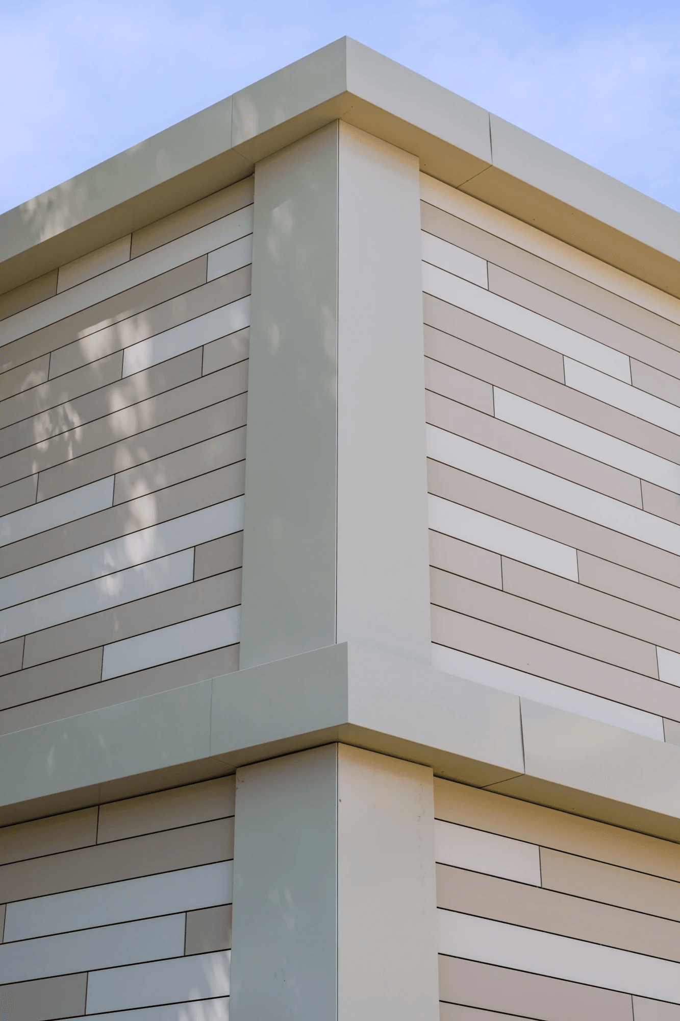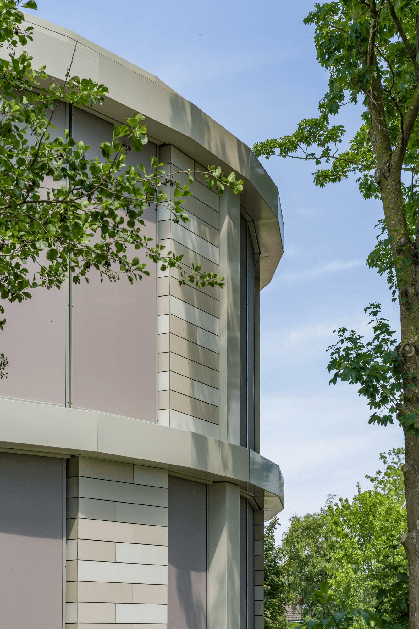 De gevelbekleding is niet alleen esthetisch in balans met het strakke ontwerp van de school, maar voldoet ook aan hoge eisen op het gebied van duurzaamheid en onderhoudsgemak. Dankzij ons vakmanschap in maatwerkprofielen en slimme bevestigingsoplossingen sluit het geheel naadloos aan op de architectuur van het gebouw.
