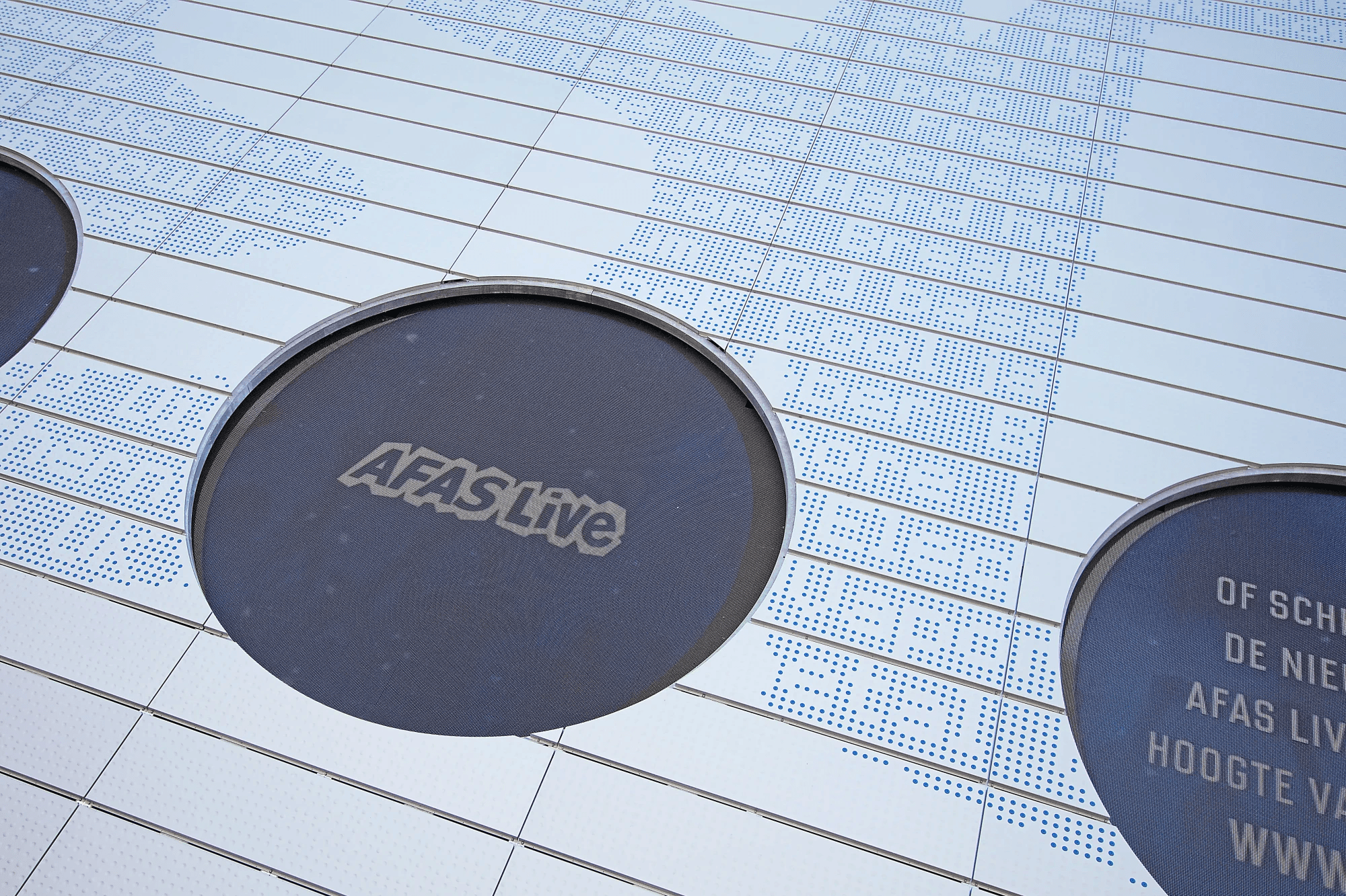 AFAS Live heeft eindelijk een gevel die past bij zijn uitstraling. Sinds de naamswijziging in januari 2017 maakte de voormalige gevel een kale indruk: hier is nu verandering in gebracht!
