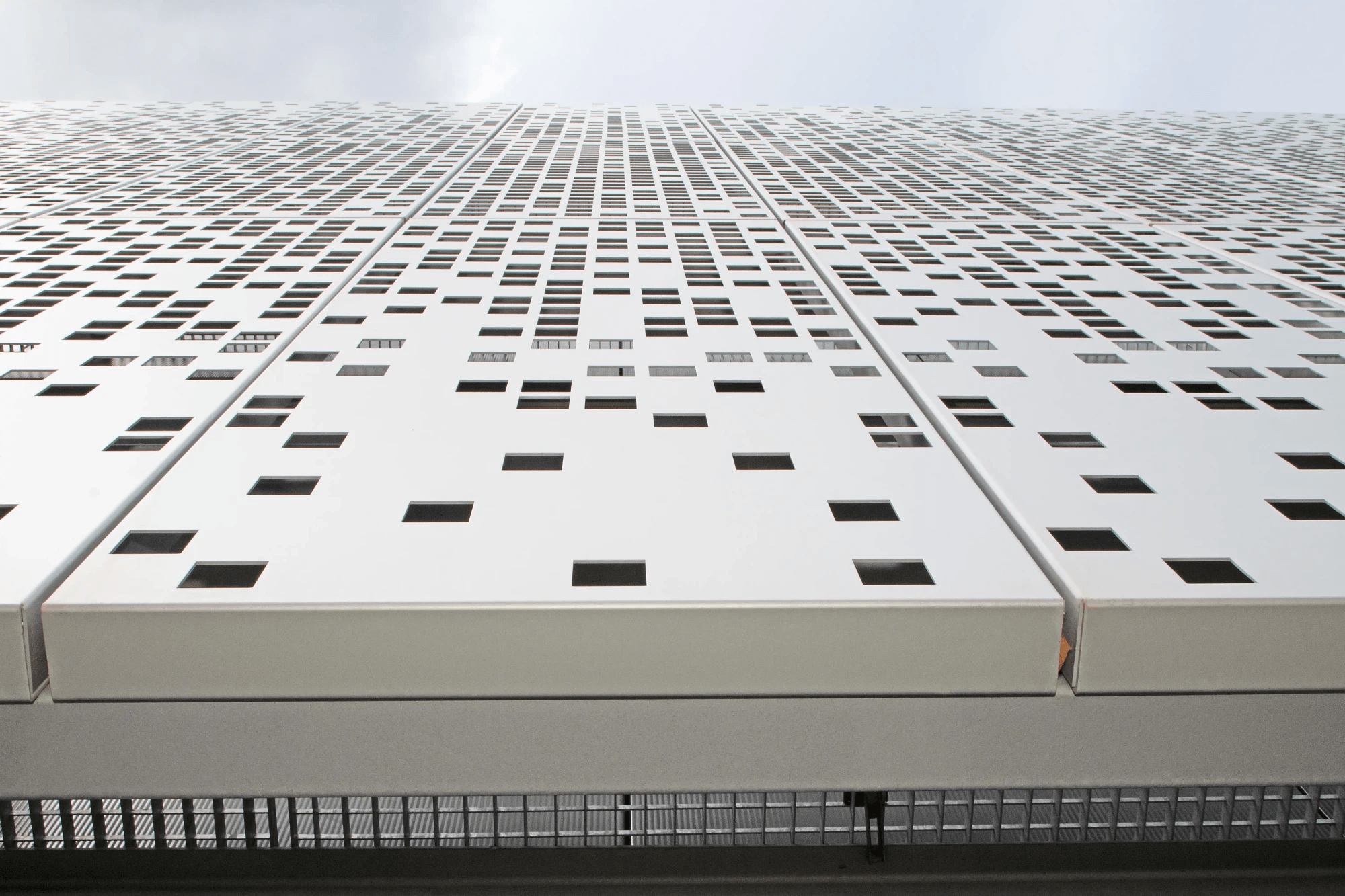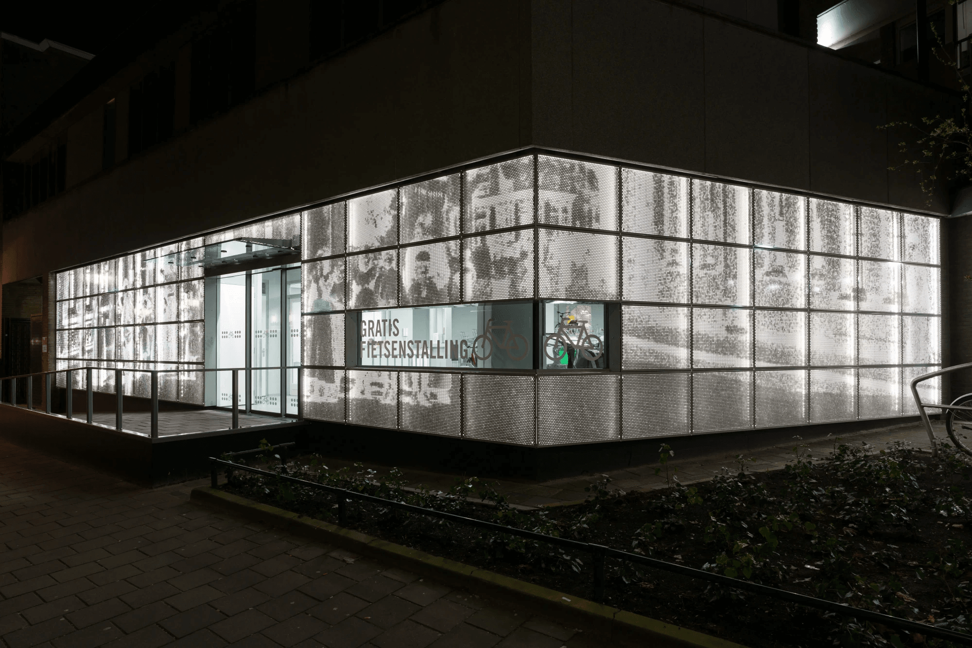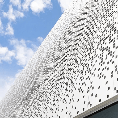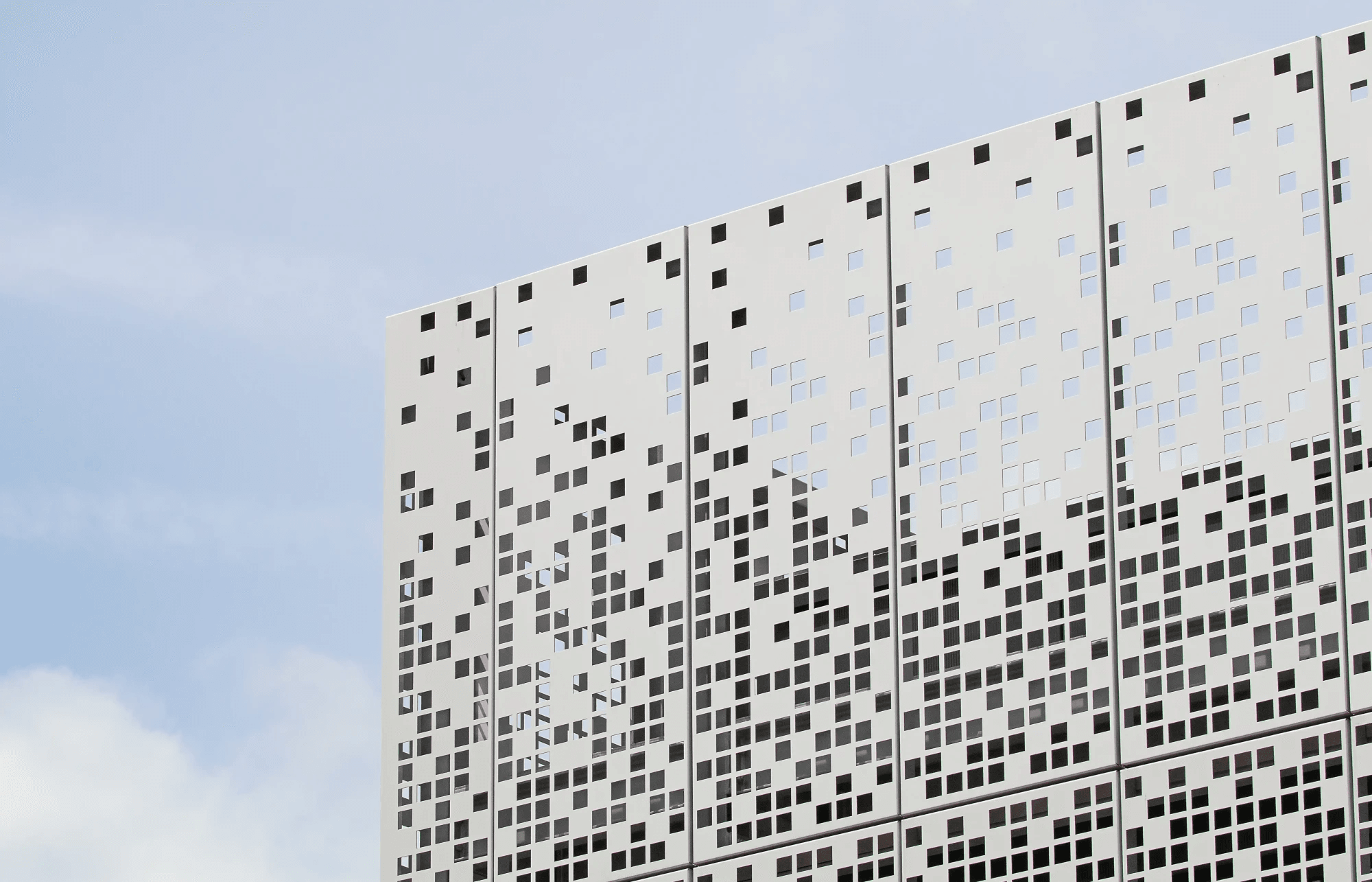 Gevelbekleding in gepoedercoat aluminium voorzien van perforatie