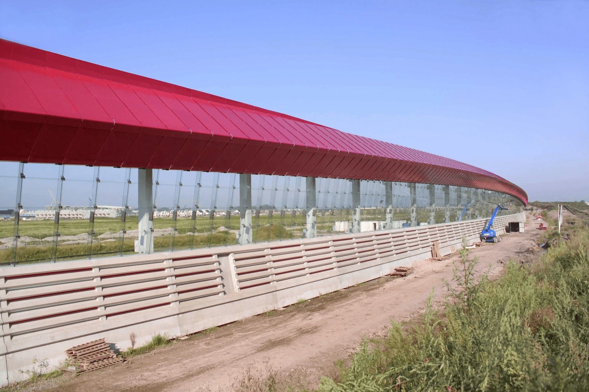 VPT produceerde en leverde alle rode gevelpanelen van The Wall. In totaal 22.000m2 gevelsysteem. Daarnaast verzorgde VPT de aluminium gevelbekleding van de entrees. Het gevelsysteem is een speciaal voor dit project gedetailleerd systeem waarbij de panelen schubsgewijs overlappen. Het gevel cassette systeem is uitgevoerd in PVDF gecoat aluminium, waarbij de gekozen rode kleur het resultaat is van diverse kleurstudies.