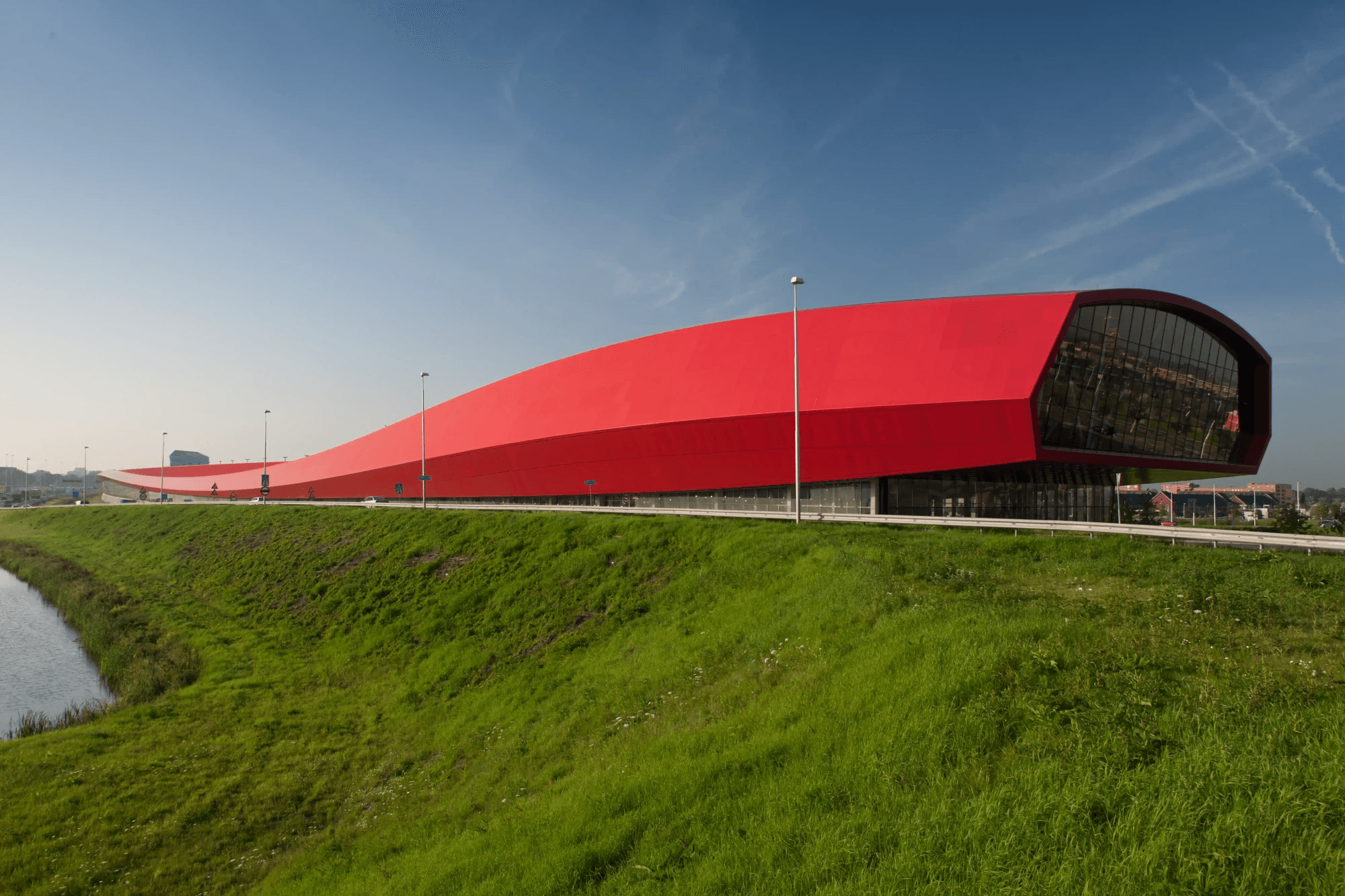 VPT heeft de complete gevelschil gerealiseerd waarbij een systeem van sandwichpanelen de isolerende laag vormen. De geperforeerde gevelbekleding vormt een integraal systeem met de sandwichbekleding. De gevel is voorzien van een speciaal perforatiepatroon, waarbij de letters en het logo uitgevoerd zijn in een afwijkend patroon. De geperforeerde gevel vormt een losse schil om het gebouw die gelaagdheid geeft aan het ontwerp. De geperforeerde panelen dragen tevens bij aan de zonwering voor de ramen.