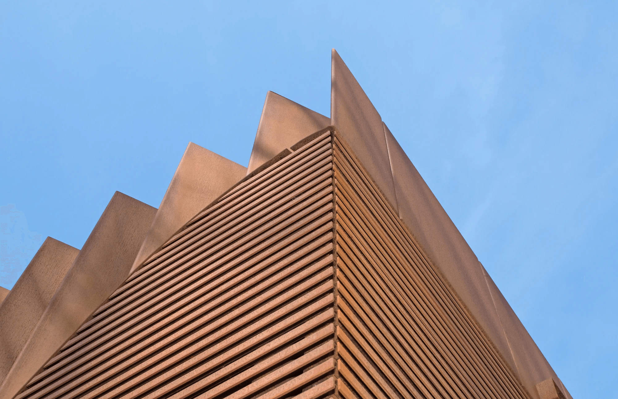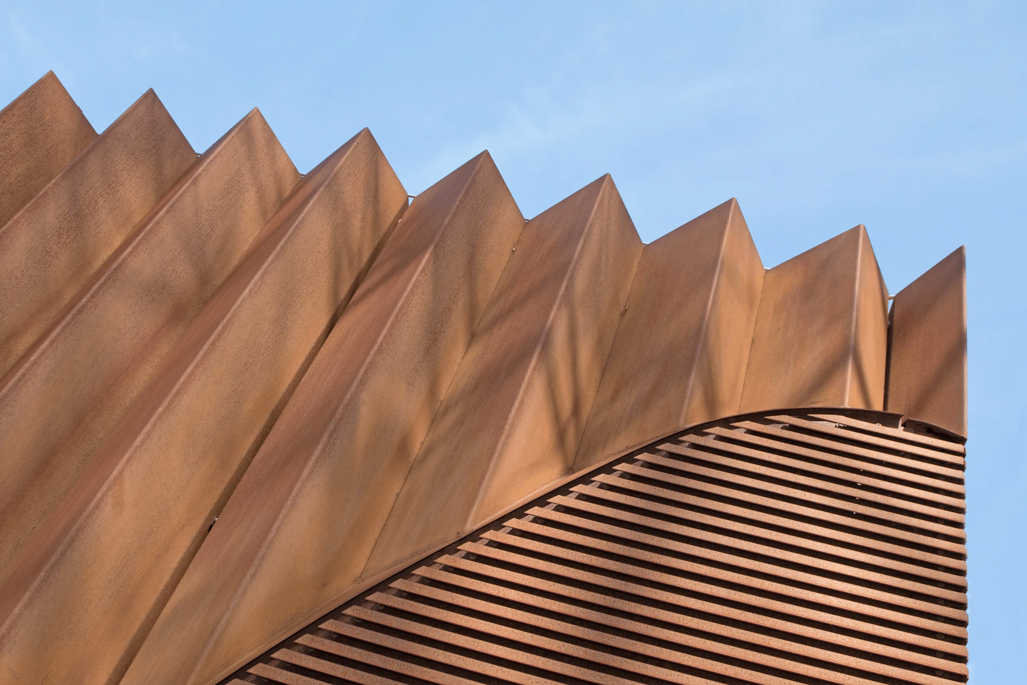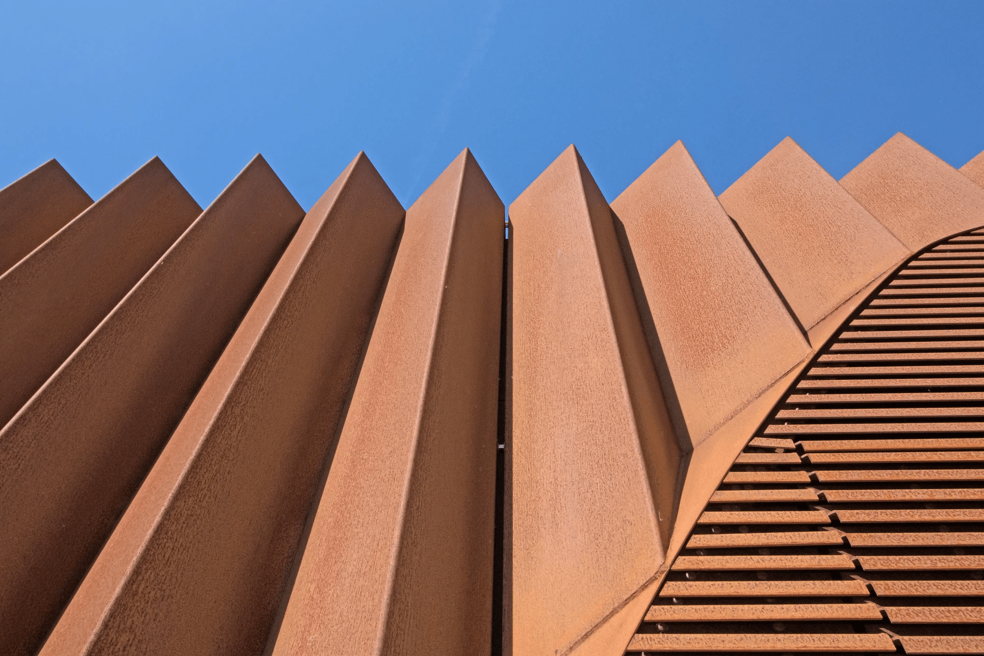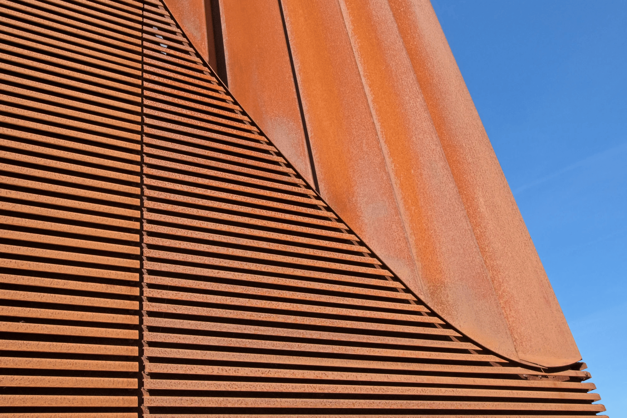 Een grafisch beeld door asymetrisch gevouwen Cortenstaal