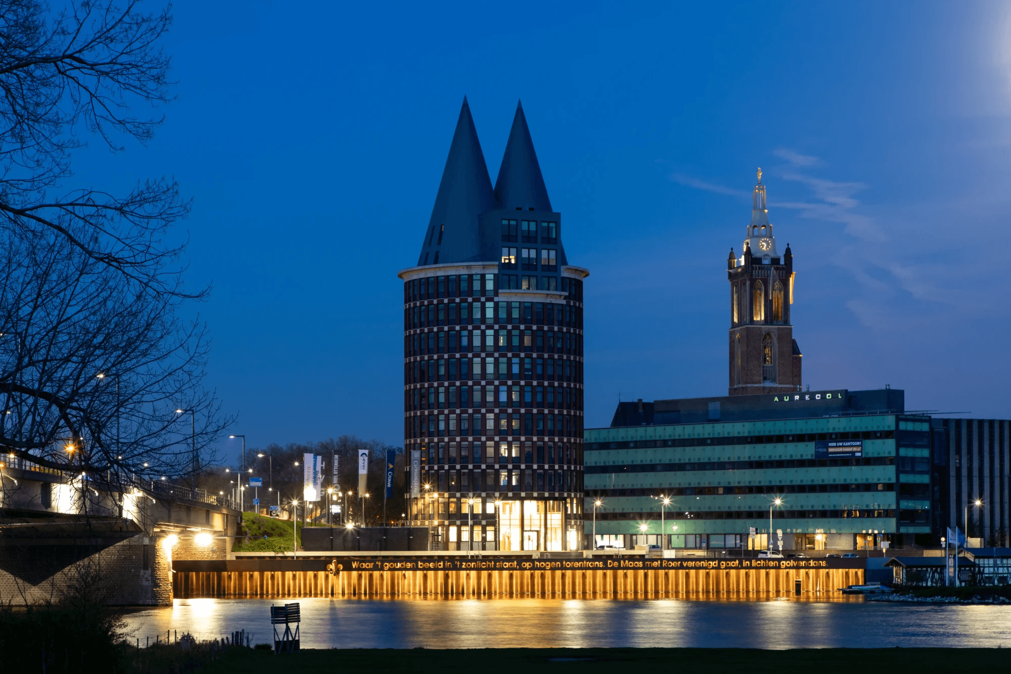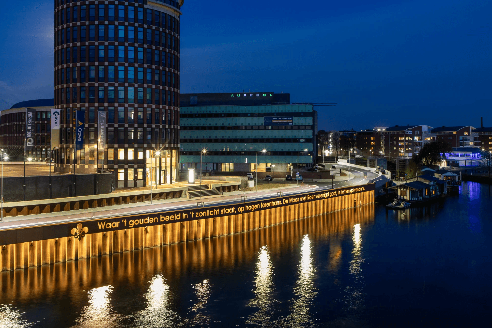 Een unieke combinatie, cortenstaal en LED-verlichting. De damwand Looskade in Roermond is door de gevelbekleding flink opgeknapt.