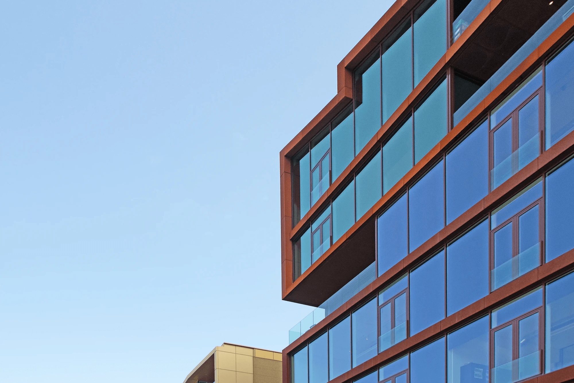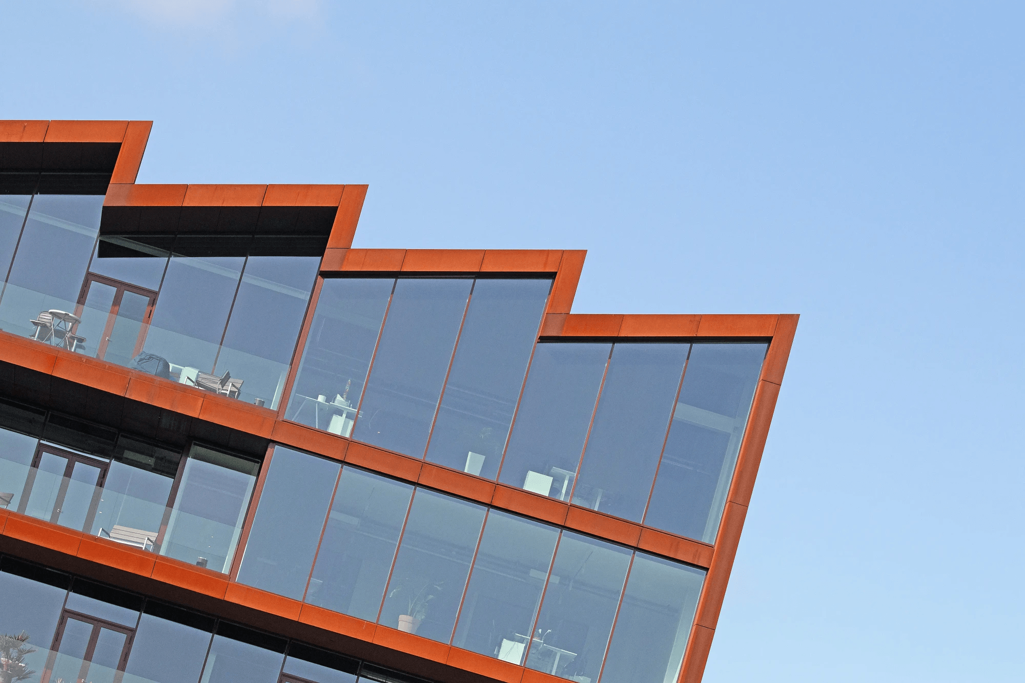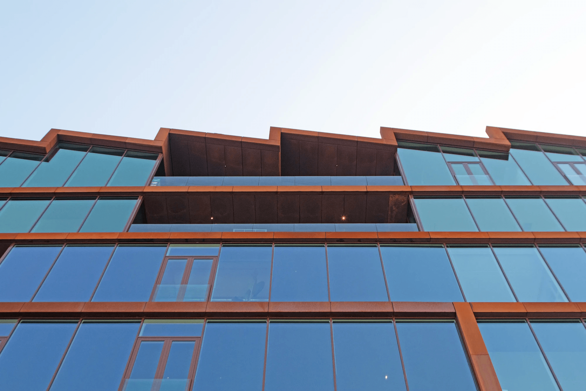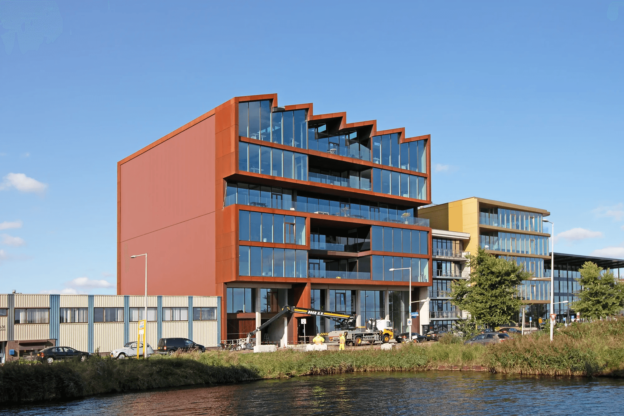Het nieuwe kantoorpand van Dedato (Danzigerkade 2) is helemaal klaar voor de herfst. Door de cortenstalen gevelbekleding heeft het gebouw een stoere en roestige look. Hierdoor wordt het gebouw een échte blikvanger. Danzigerkade wordt een leuke, kleurrijke straat. Naast dit cortenstalen eyecatcher staat namelijk ook een goudkleurig pand met aluminium gevelbekleding, ook gerealiseerd door VPT.