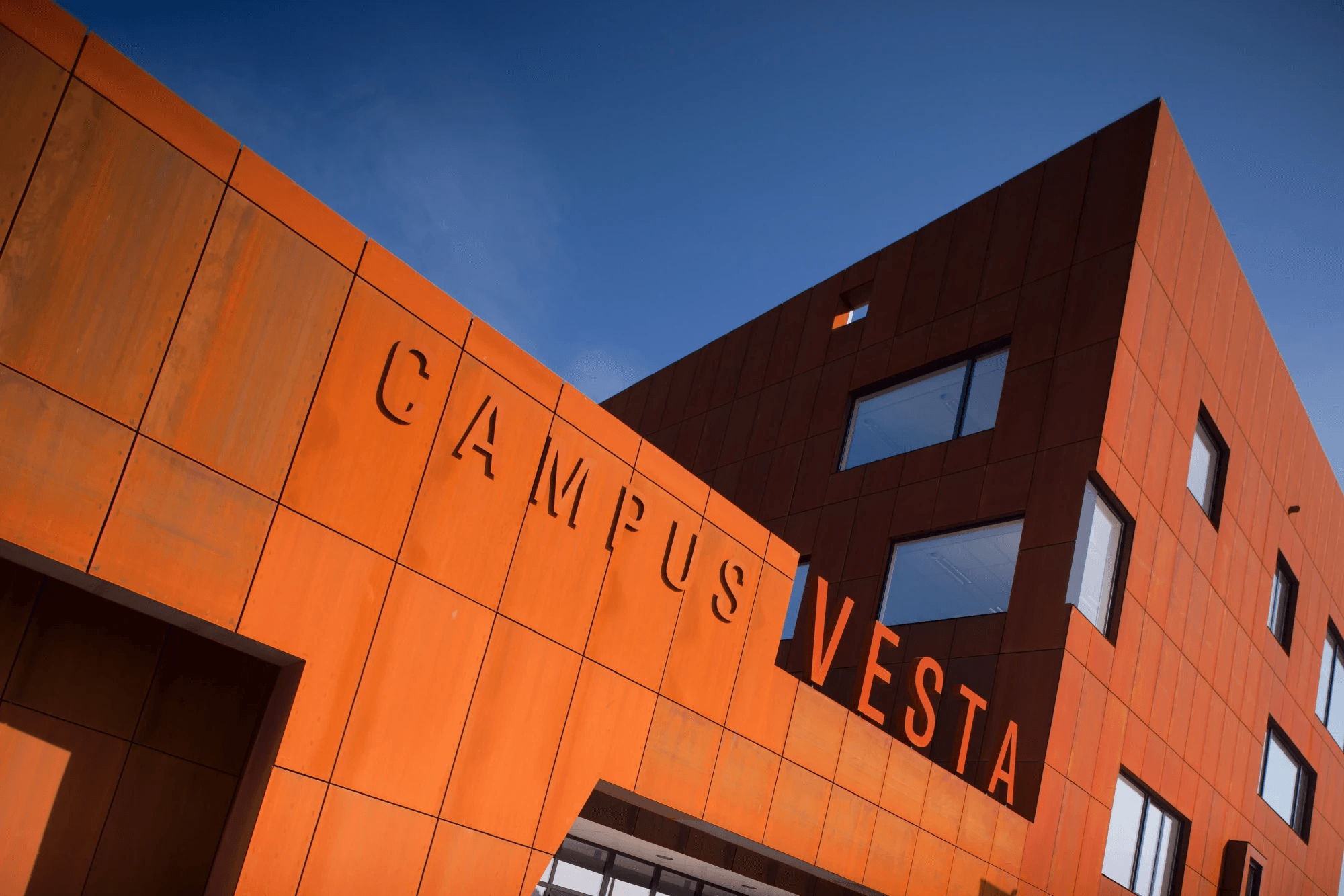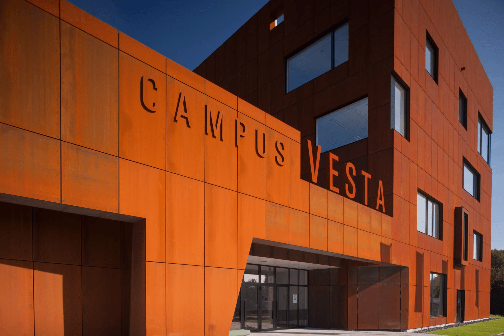 VPT produceerde en monteerde voor dit project 4000 m2 gevelsystemen en 1000m1 aan zetwerken van Cortenstaal. Campus Vesta is een bijzonder project in zijn uitvoering. De gevelbekleding is voorzien van gevelpanelen in Cortenstaal, waarbij de panelen niet zijn gezet of geplooid zoals gebruikelijk, maar scherp gedetailleerd en voorzien van ingelaste strippen. De raampartijen lijken random in de gevel gepositioneerd, waardoor er veel variëteit ontstaat.
