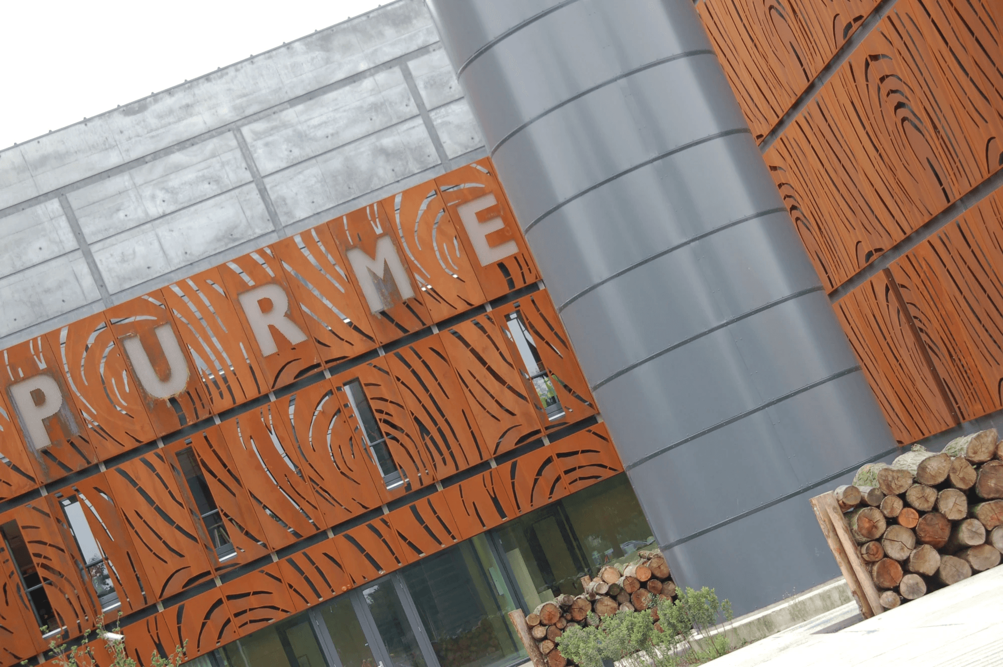 VPT heeft voor dit project de Cortenstalen gevelbekleding mogen verzorgen wat meteen opvalt bij de hoofdentree. Door middel van lasersnijden is de gevel voorzien van een abstract patroon. Wat ook direct opvalt is de naam van de Biowarmecentrale "de Purmer" die in de gevel gemaakt is door middel van Art Punch.