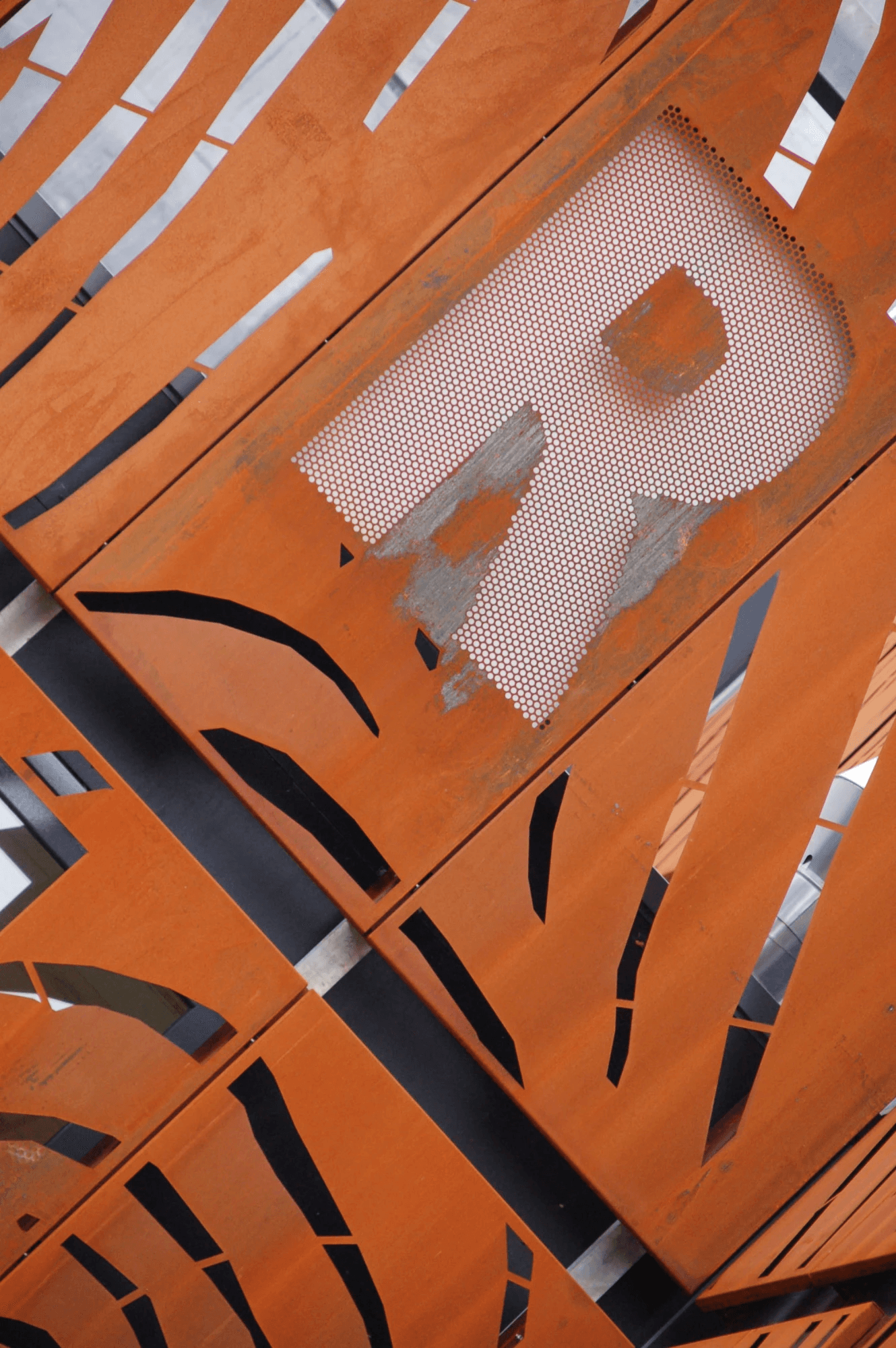 Abstract patroon in Cortenstalen gevelbekleding