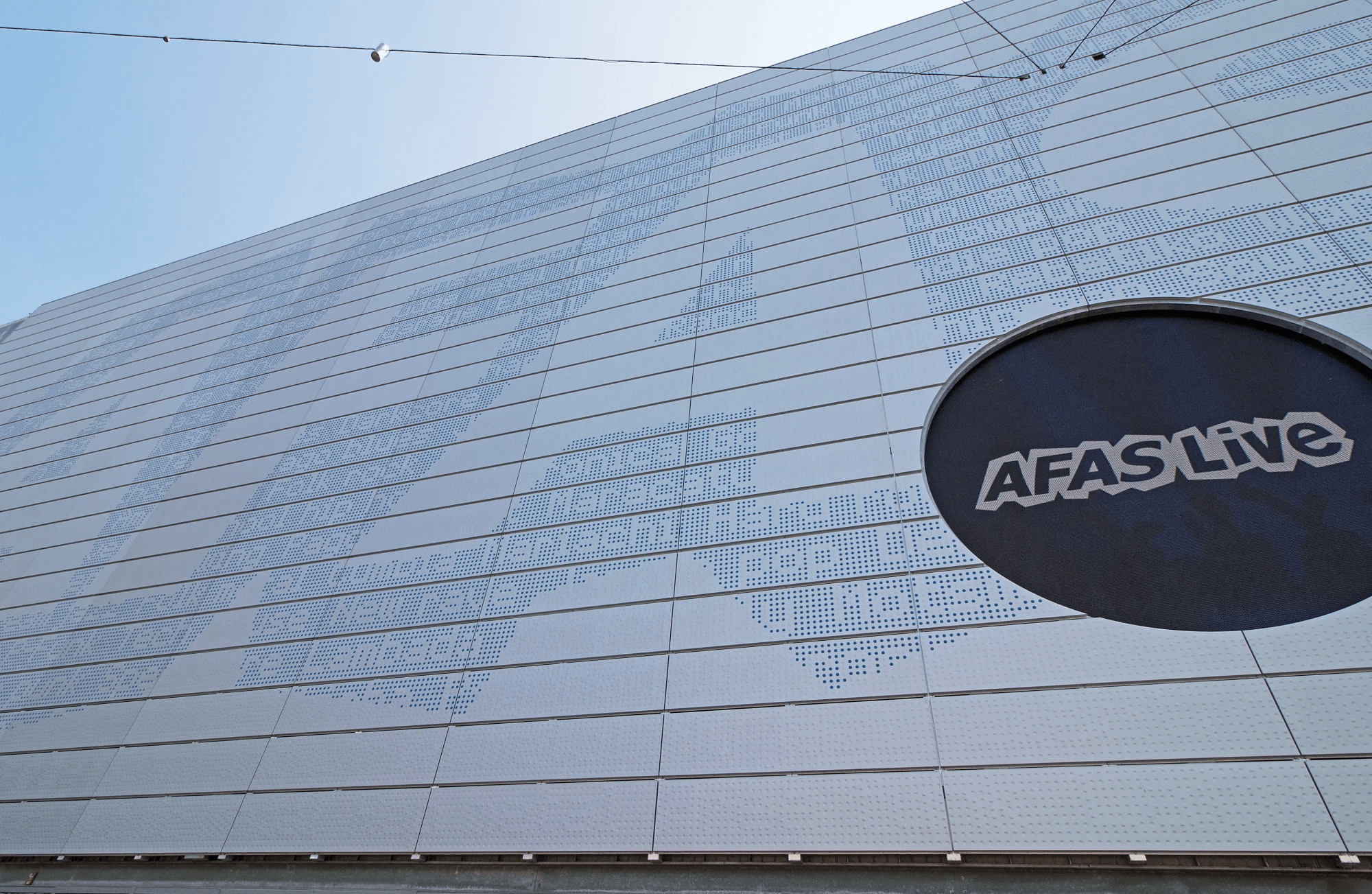 AFAS Live heeft eindelijk een gevel die past bij zijn uitstraling. Sinds de naamswijziging in januari 2017 maakte de voormalige gevel een kale indruk: hier is nu verandering in gebracht!