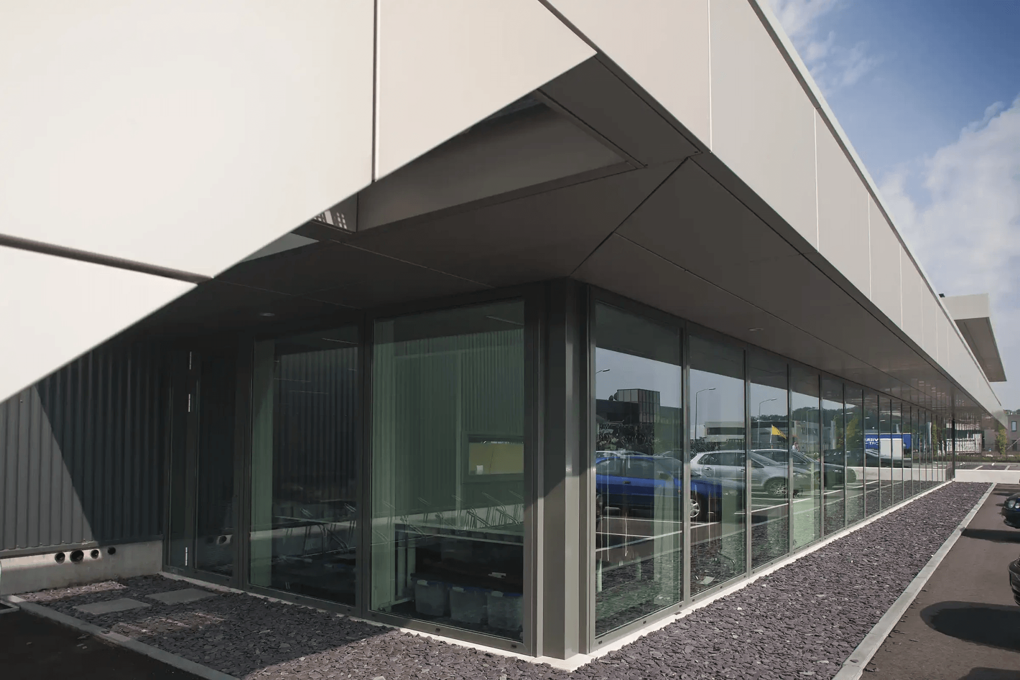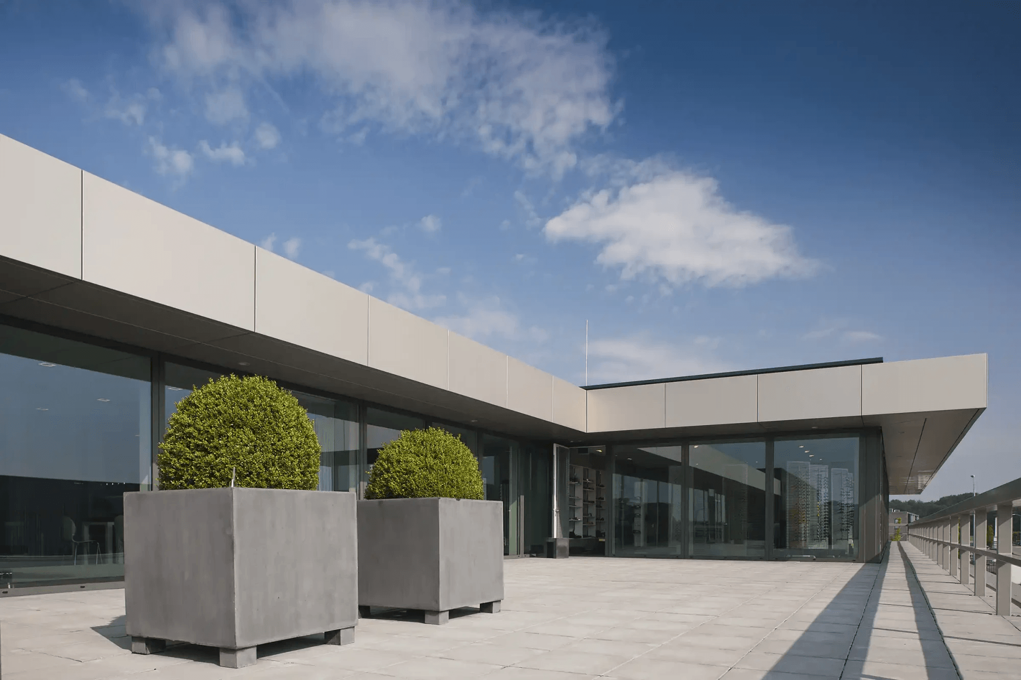 VPT verzorgde de engineering, productie en montage van de aluminium geanodiseerde gevels, alsmede de luifels, de plafonds en de trapopgang.