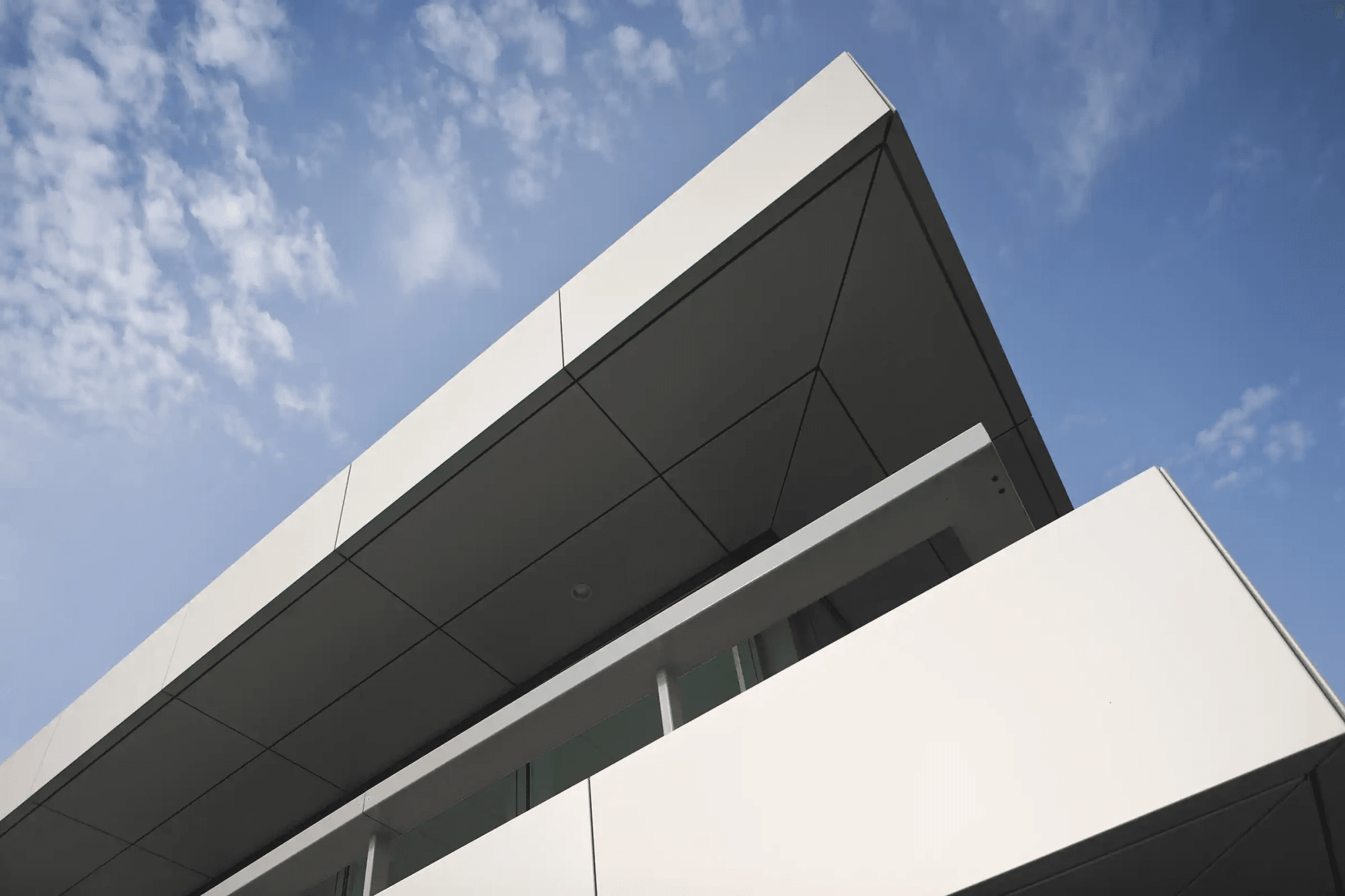 De krachtige uitstraling van het pand is vormgegeven door een eenvoudige ingreep in het ontwerp: het gebruik van expressieve luifels in geanodiseerd aluminium, die afhankelijk van het weer steeds van kleur veranderen. Deze multifunctionele luifels werken als zonwering, balkon en glazenwasbalkon.