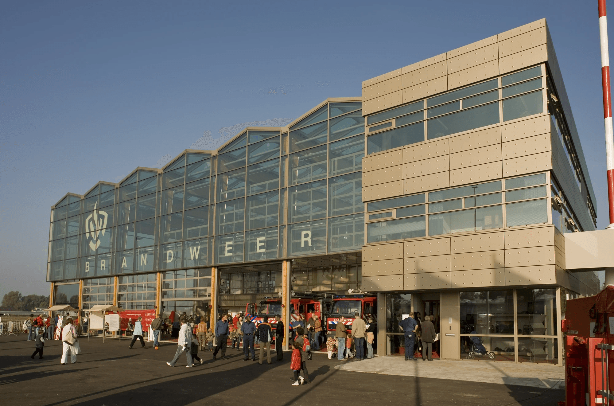 De Brandweerkazerne Pijnacker is een uniek ontwerp waarbij het materiaal gebruik van hout en brons geanodiseerd aluminium consequent is doorgevoerd. Dit creëert rust in een hectische omgeving.