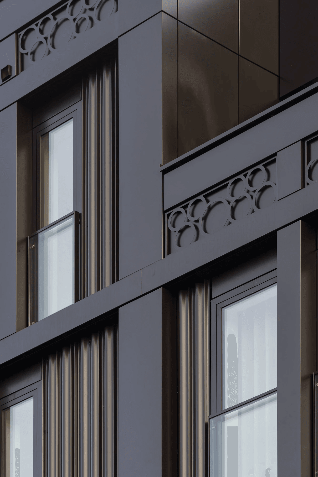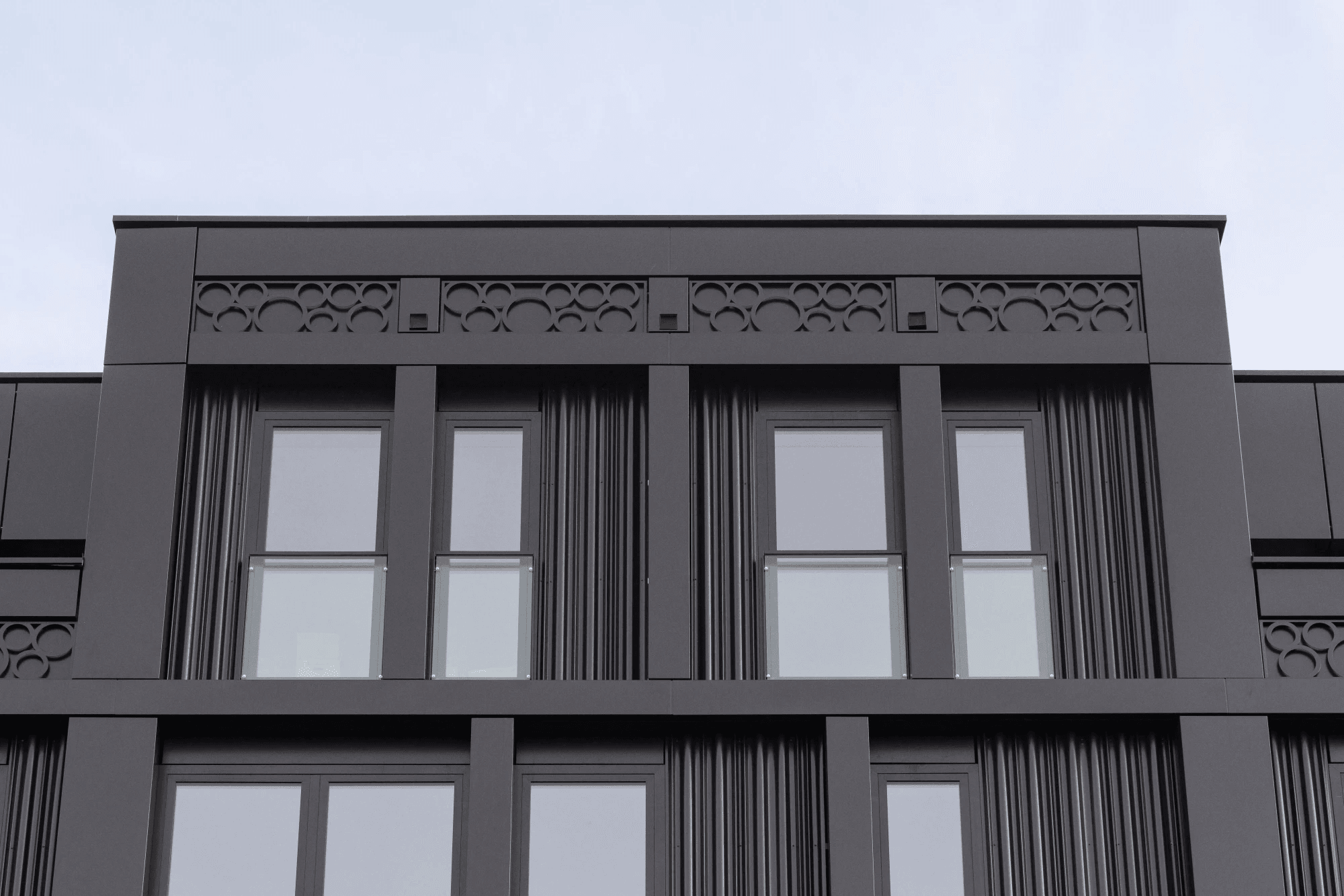 Arnhem staat bekend als fashion stad. De golvende gevelpanelen verwijzen naar stukken stof en de innovatieve toepassing met materiaal. De doorgang naar de Foodhall kan gezien worden als catwalk. Het Kadehuis is een nieuw appartementencomplex met maar liefst zes verschillende identiteiten met een verwijzing naar Arnhemse tradities. Een van deze identiteiten is het Fashionhuis, waar VPT Versteeg gevelbekleding heeft mogen produceren, leveren en monteren. De golvende gevelpanelen en lasergesneden platen verwijzen naar stukken stof, de doorgang naar de Nieuwstraat kan worden gezien als catwalk.
