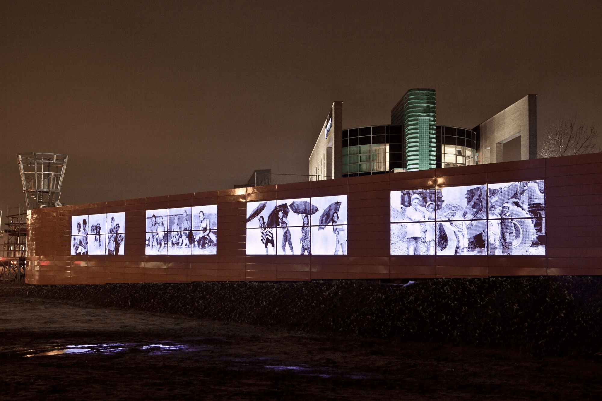 Aan de Fascinatioboulevard in Capelle aan den IJssel staat een markant kunst object. Een keerwand voorzien met geperforeerde afbeeldingen en LED verlichting