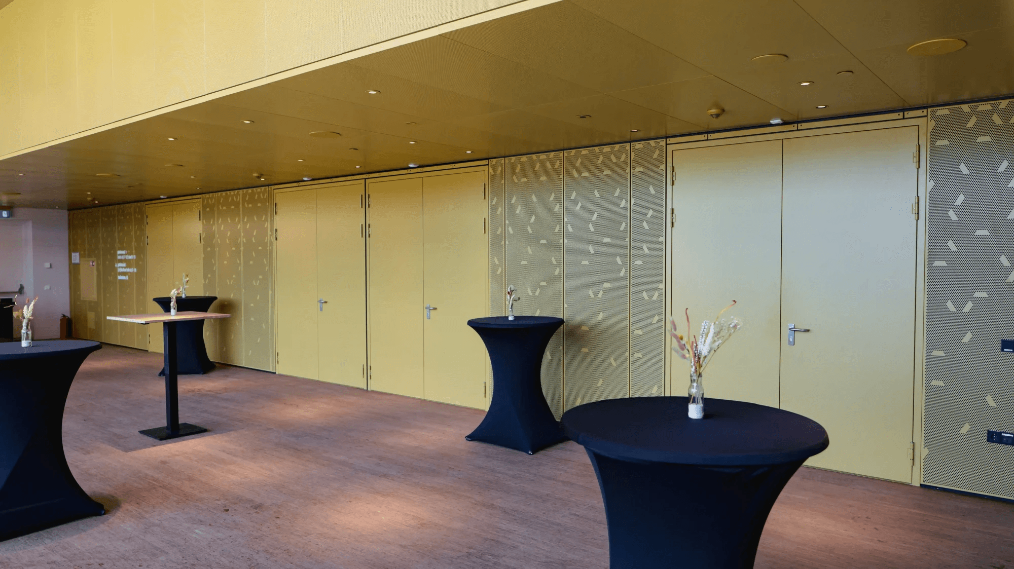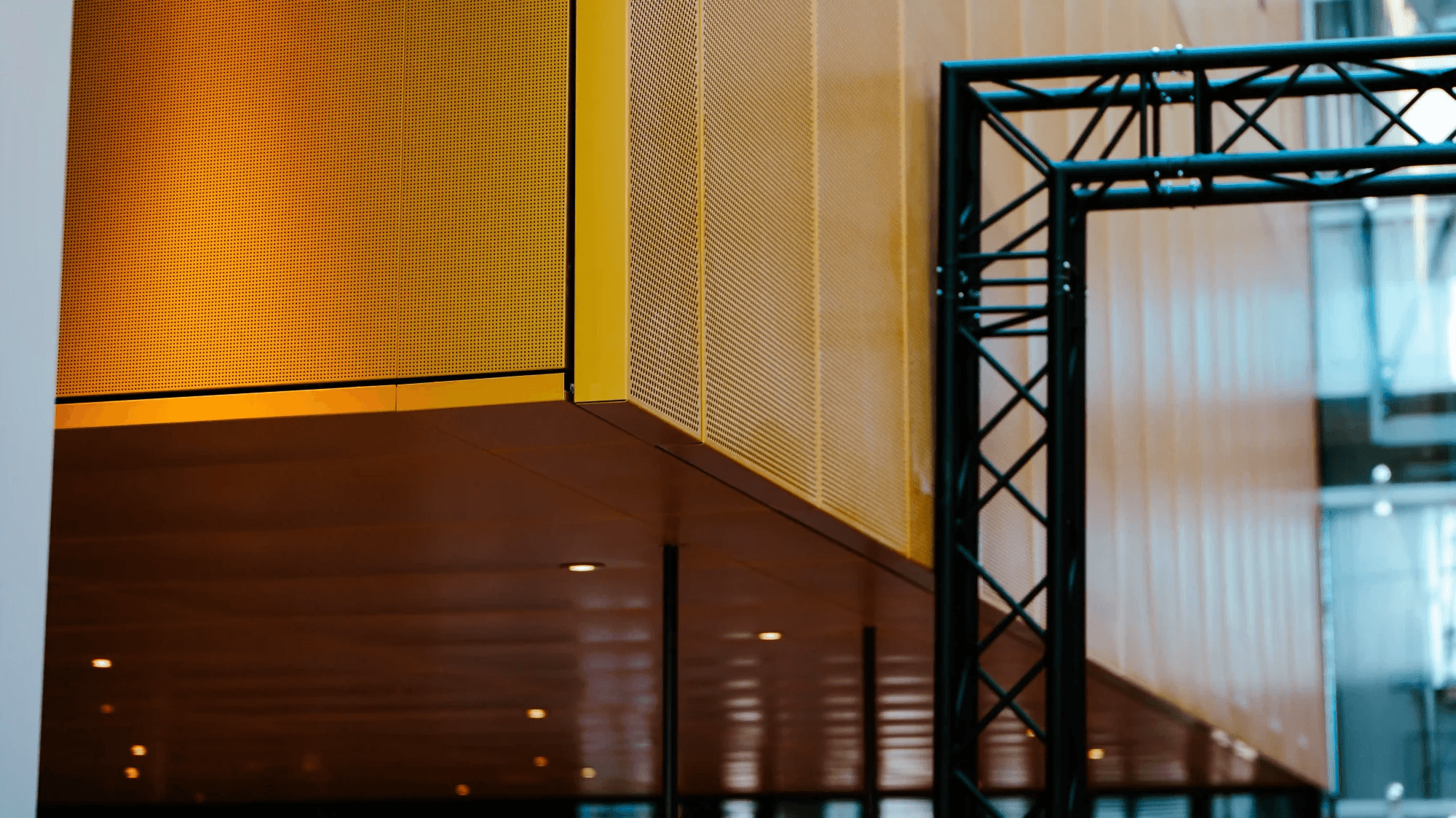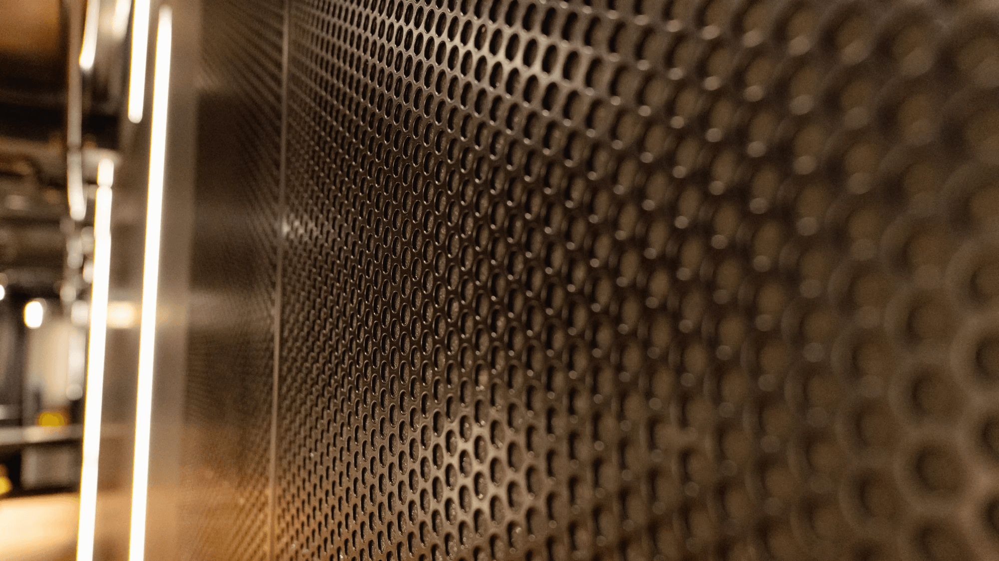 Ook in de theaterzalen vind je een vleugje VPT Versteeg. De zwart/bruinkleurige aluminium wandpanelen voorzien van art-punch geven een chique effect.