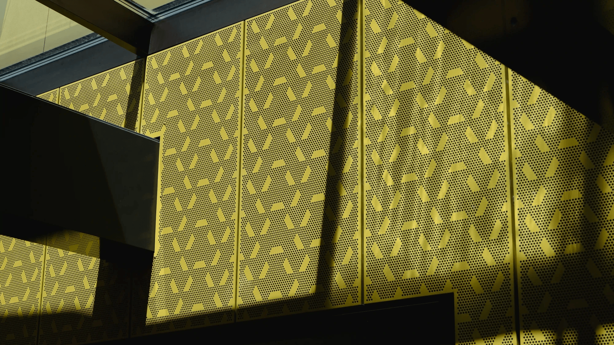 De gevelbekleding is gemaakt van aluminium en afgewerkt met een poedercoating, waardoor het zijn luxueuze gouden glans krijgt. Maar het is niet alleen de kleur die de aandacht trekt—het unieke art-punch patroon, zorgvuldig in het aluminium verwerkt, voegt een extra dimensie toe aan het ontwerp. Dit patroon speelt met licht en schaduw, waardoor de gevel tot leven komt en een dynamisch spel van reflecties en texturen biedt.