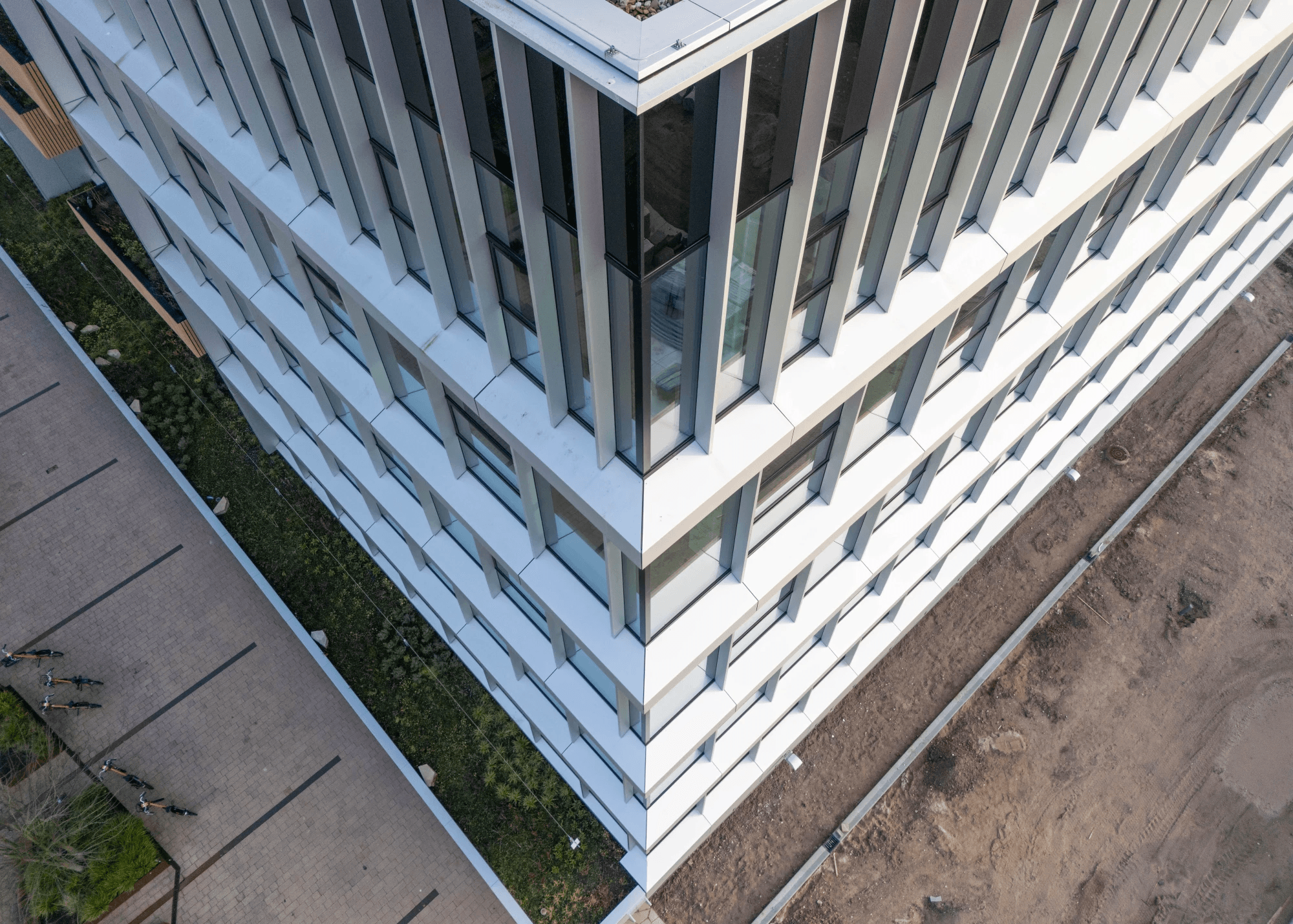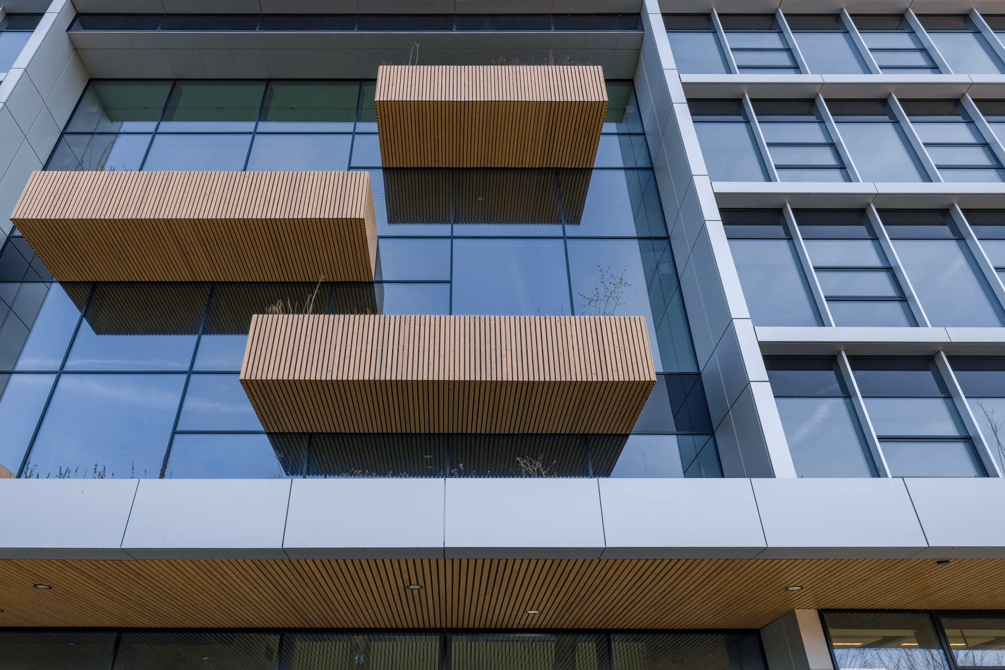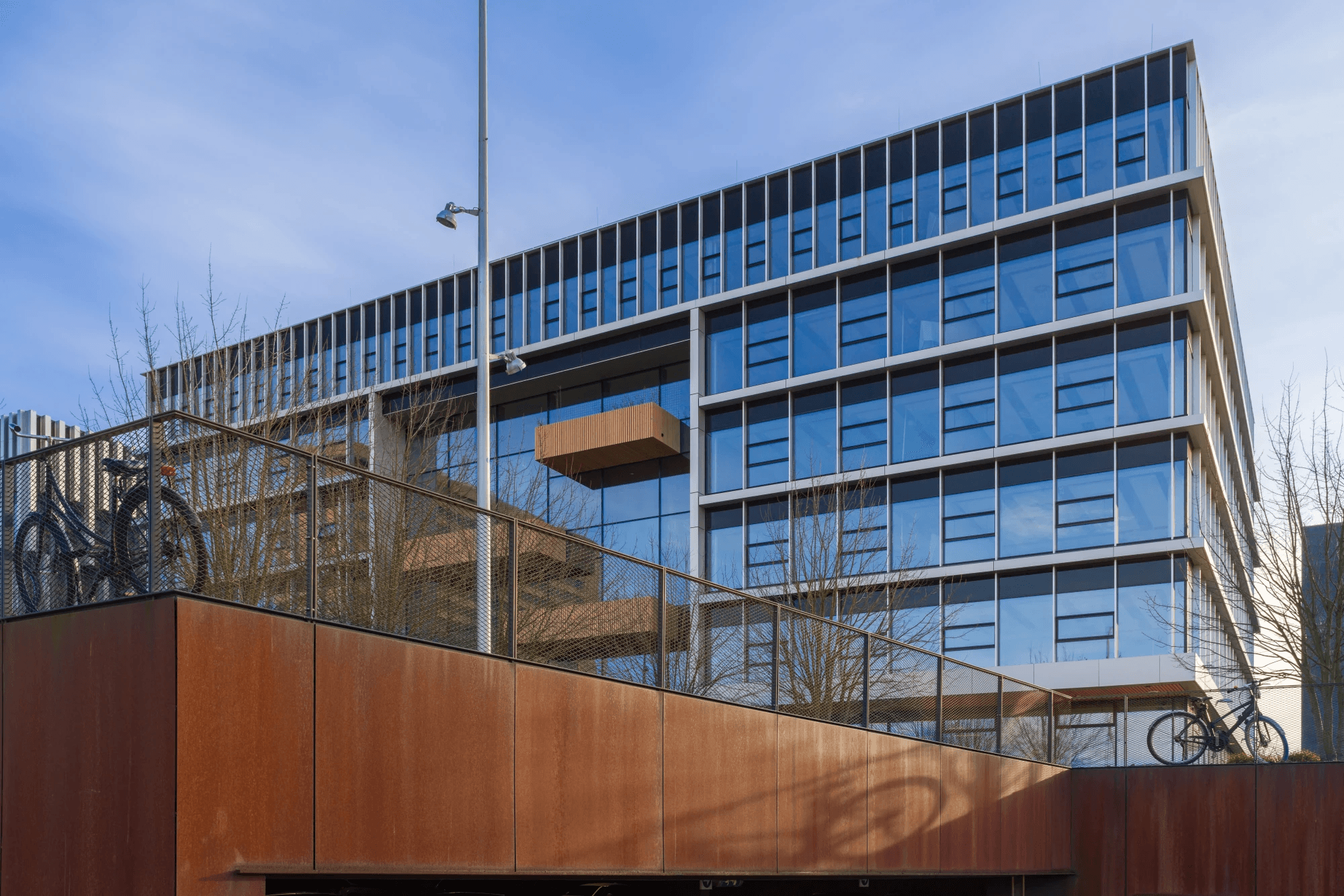 Het was daarom belangrijk dat de gevelbekleding daarop afgestemd zou worden. De transparante gevels zorgen voor verbinding met de omgeving en natuurlijk daglicht. Wat zorgt voor een warme en aangename beleving.