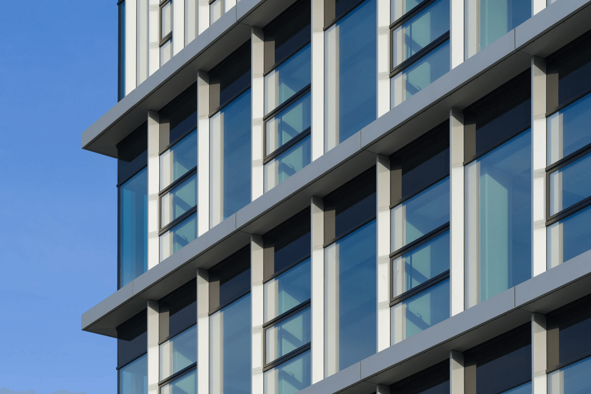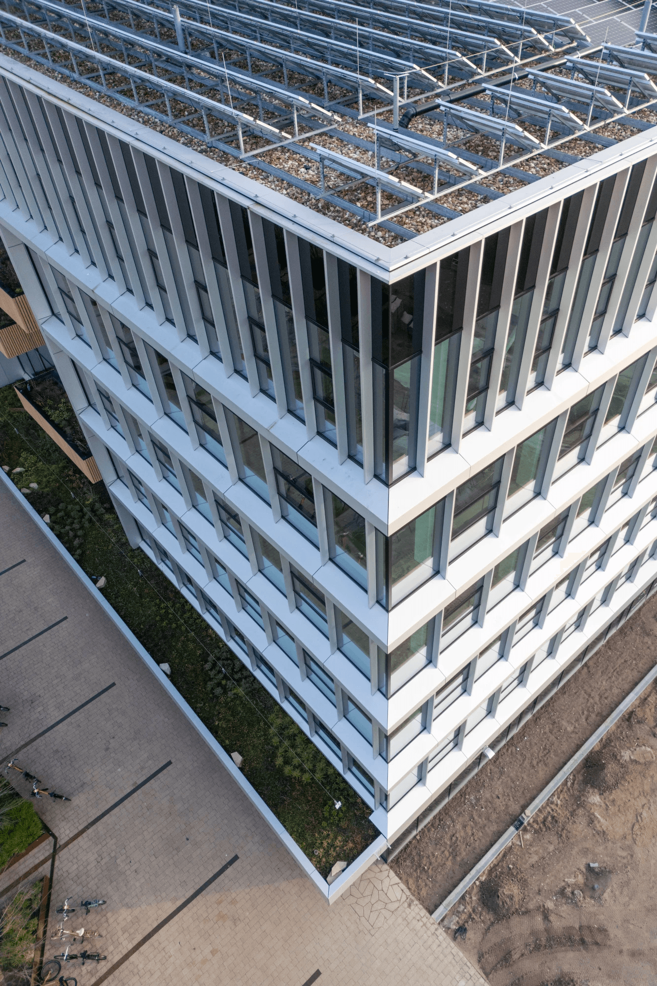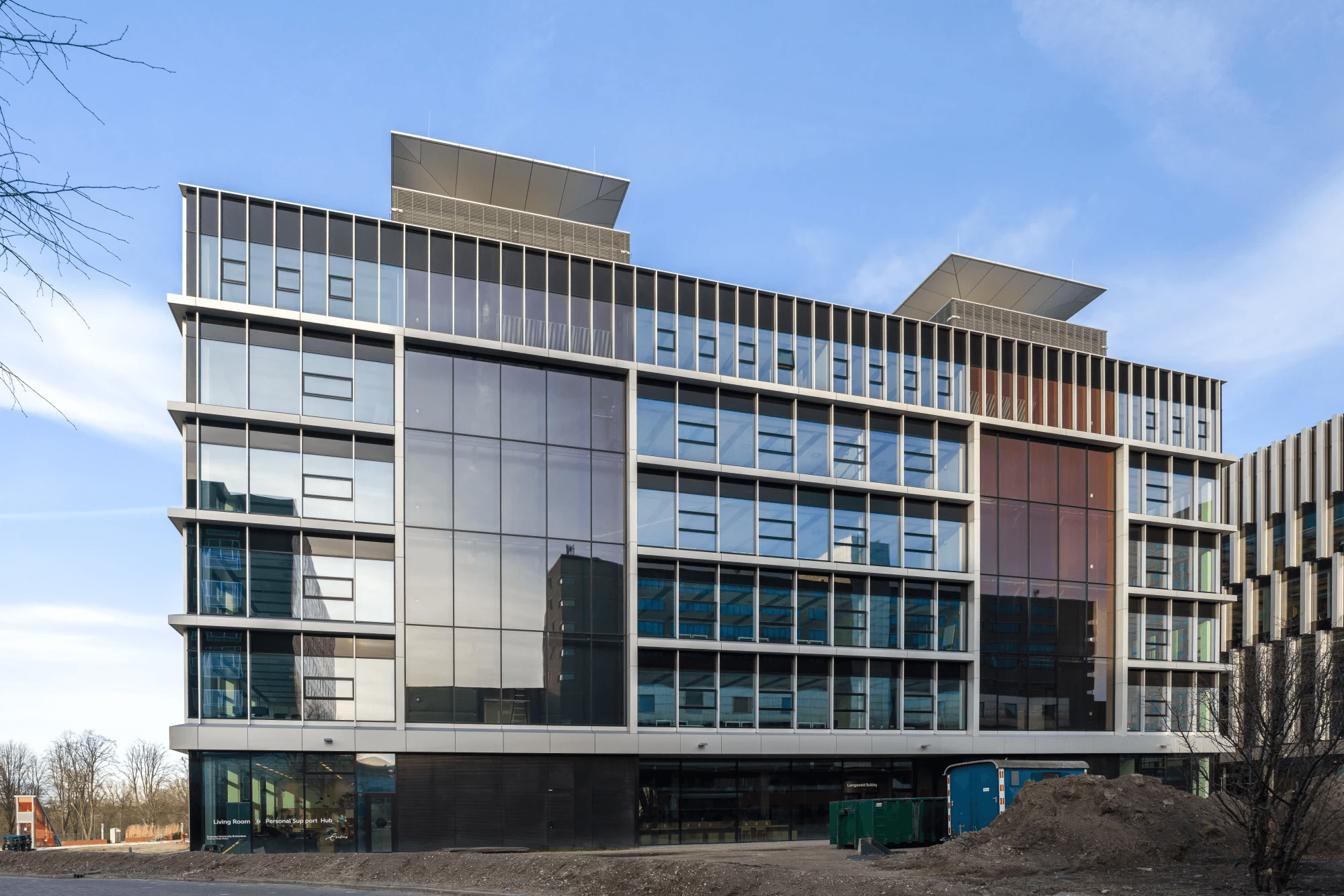 Het was daarom belangrijk dat de gevelbekleding daarop afgestemd zou worden. De transparante gevels zorgen voor verbinding met de omgeving en natuurlijk daglicht. Wat zorgt voor een warme en aangename beleving.