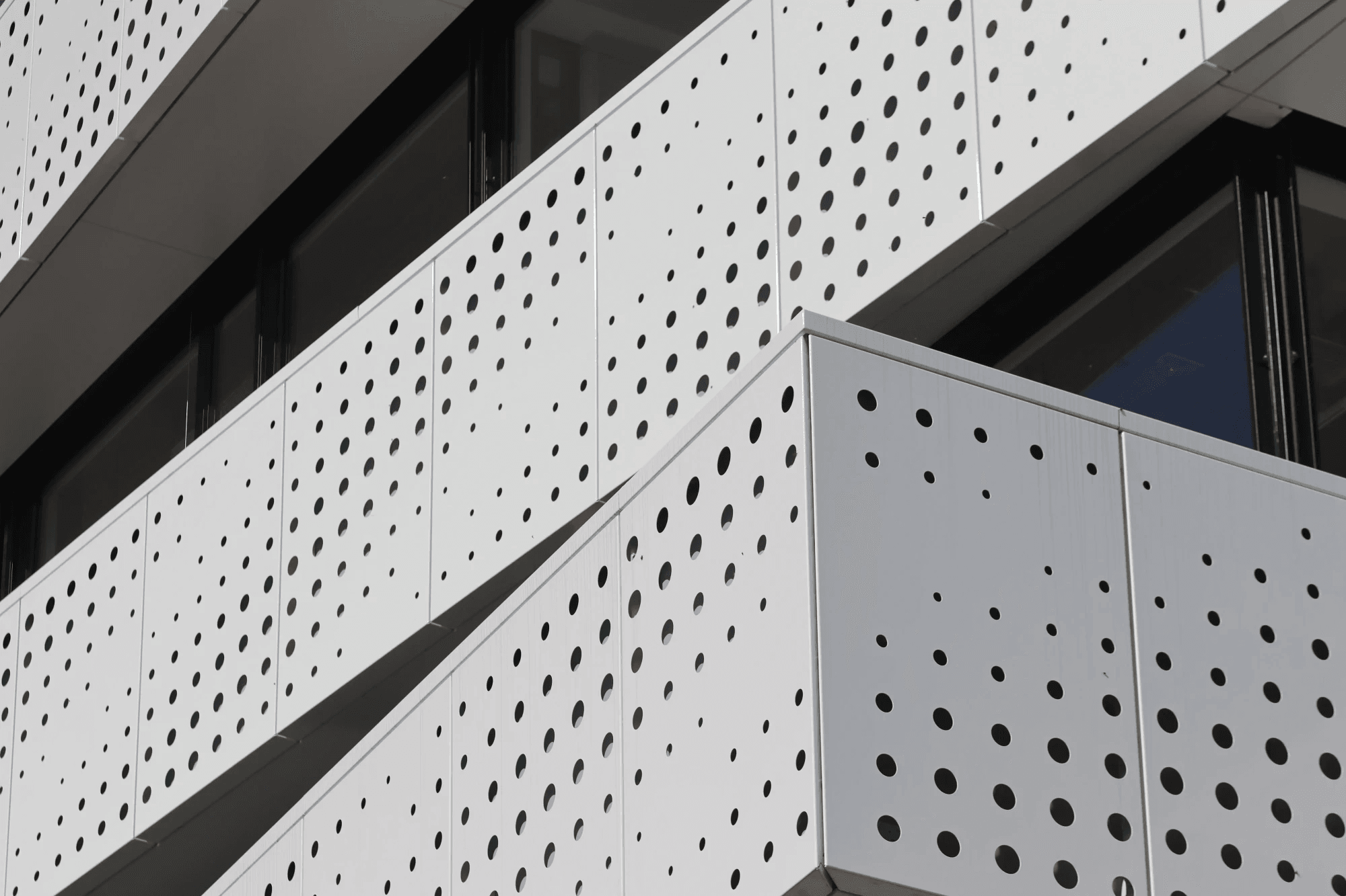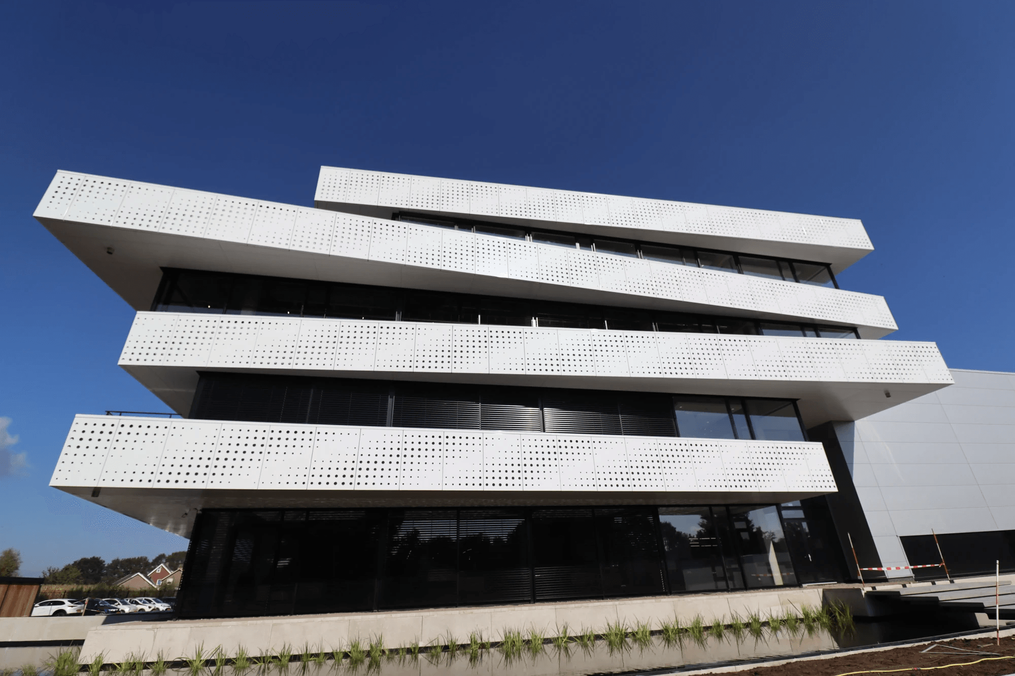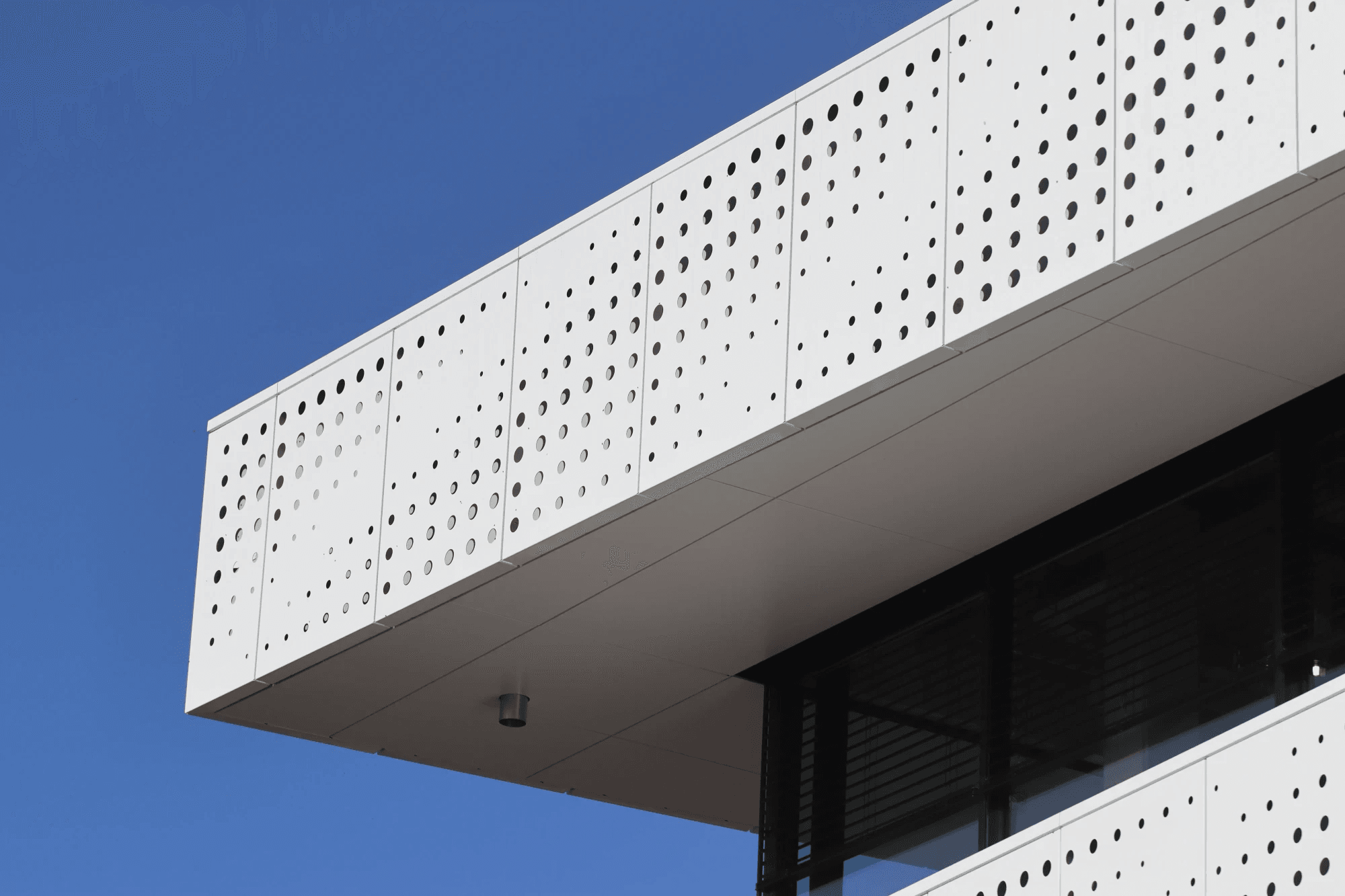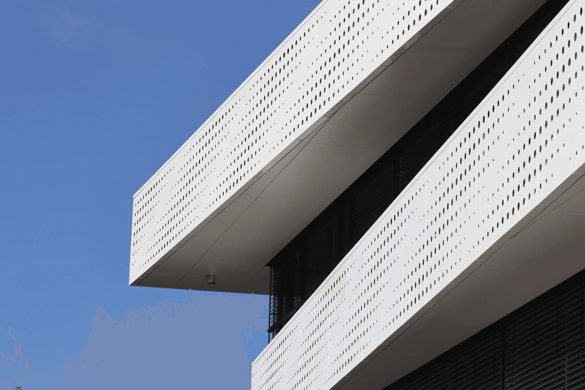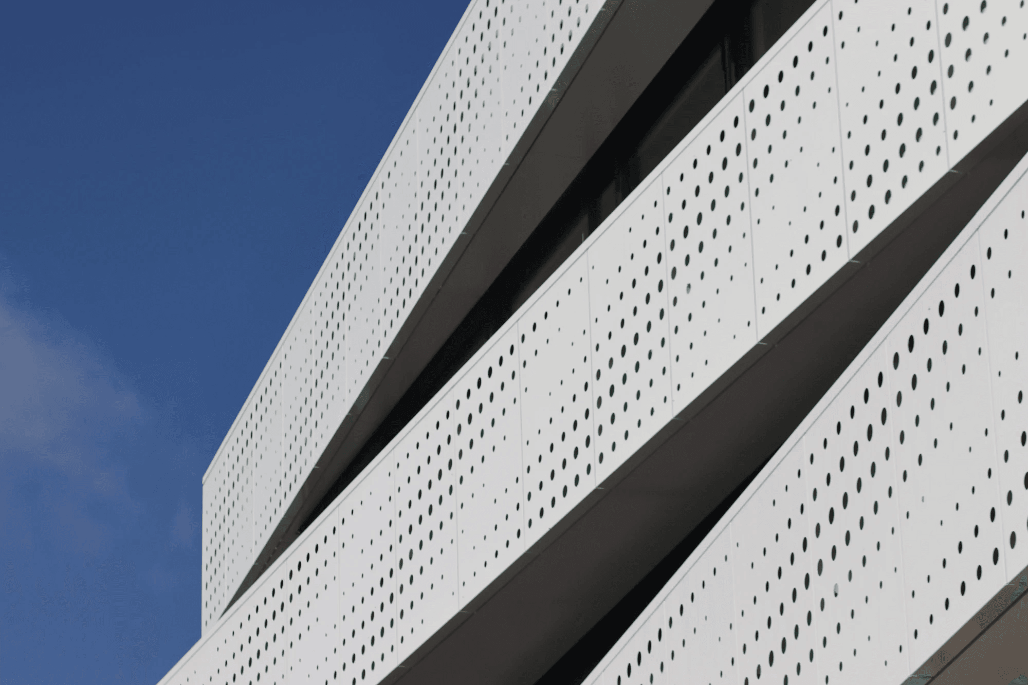gevelbekleding in aluminium voorzien van poedercoating en perforatiepatroon