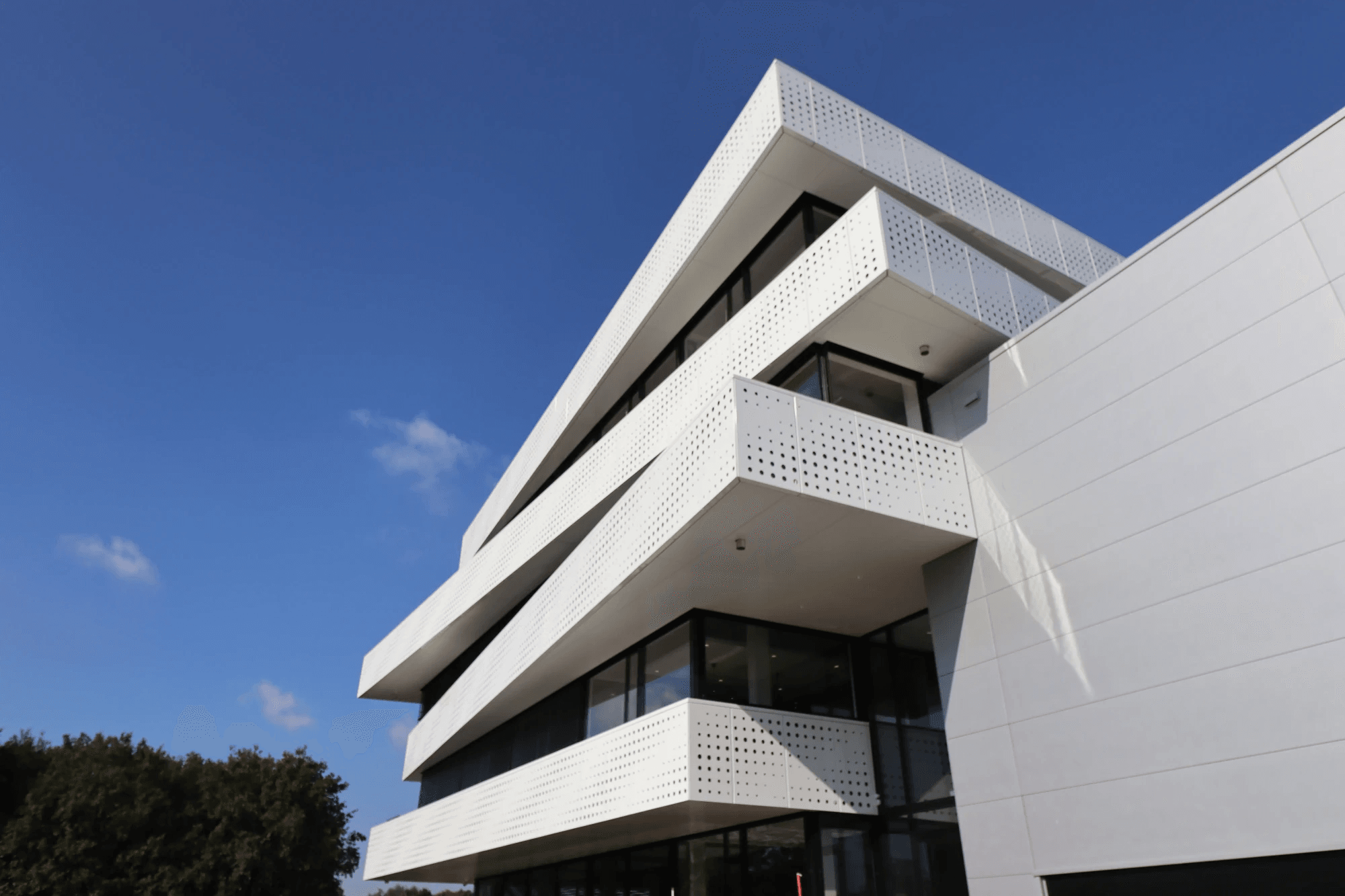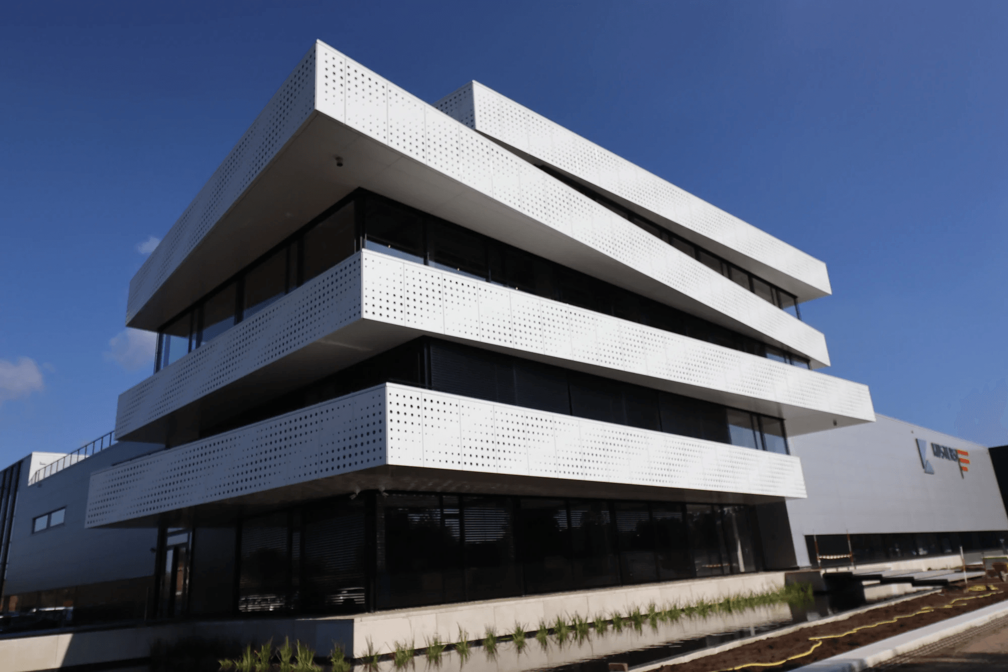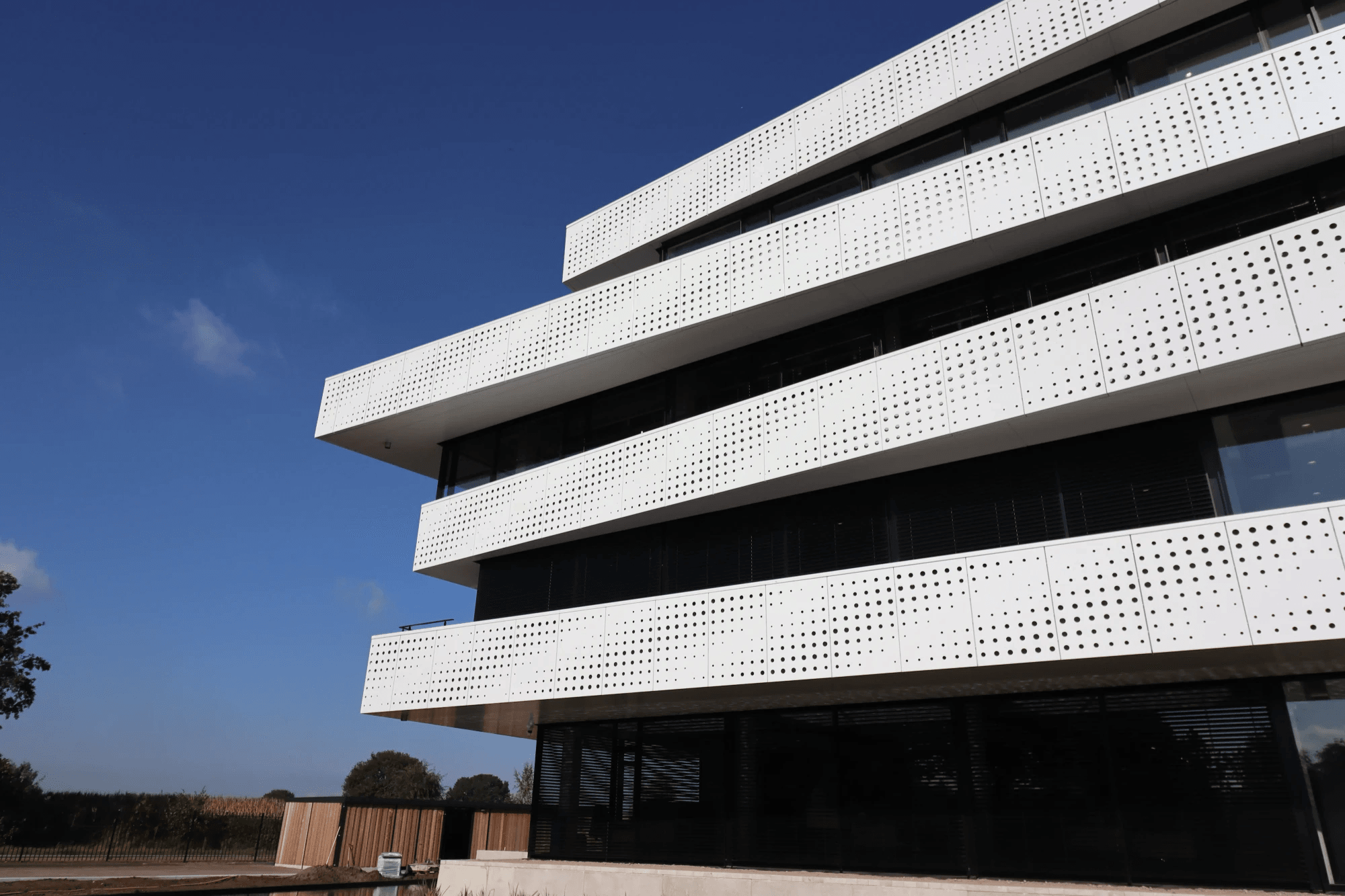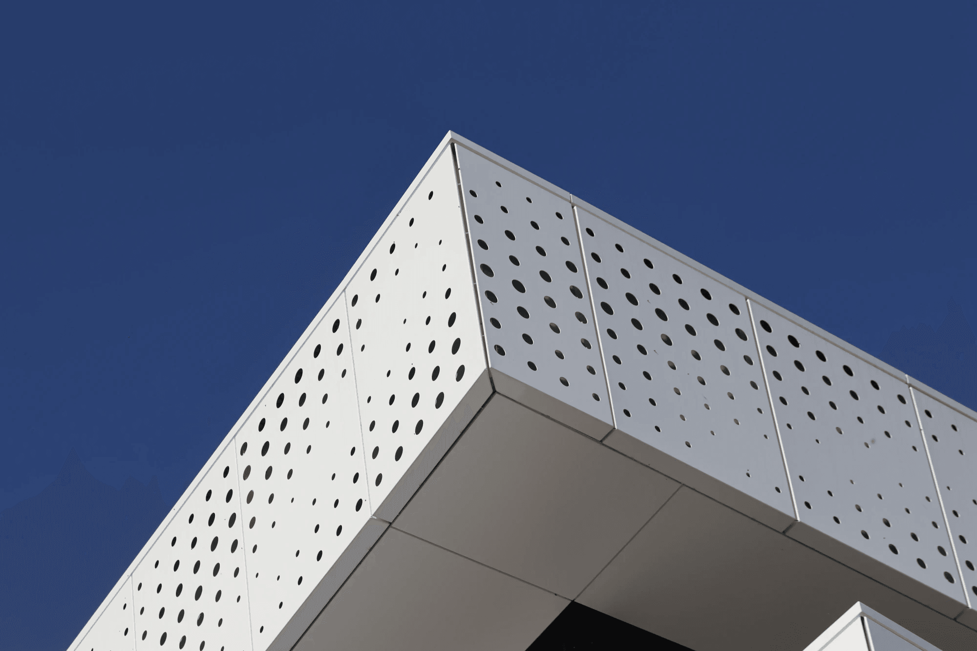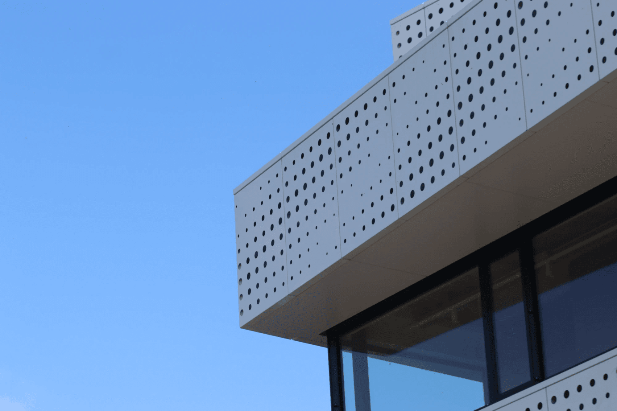 gevelbekleding in aluminium voorzien van poedercoating en perforatiepatroon