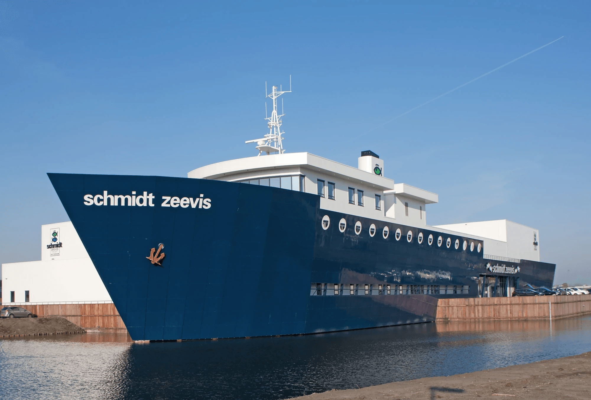 Schmidt Zeevis is reeds 100 jaar gevestigd in het centrum van Rotterdam. In 2015 is het bedrijf met de winkel verhuisd naar industrieterrein Spaanse Polder. De architect kwam met het idee om het nieuwe pand in de vorm van een schip te maken.