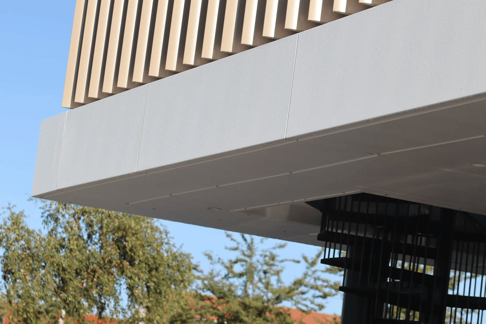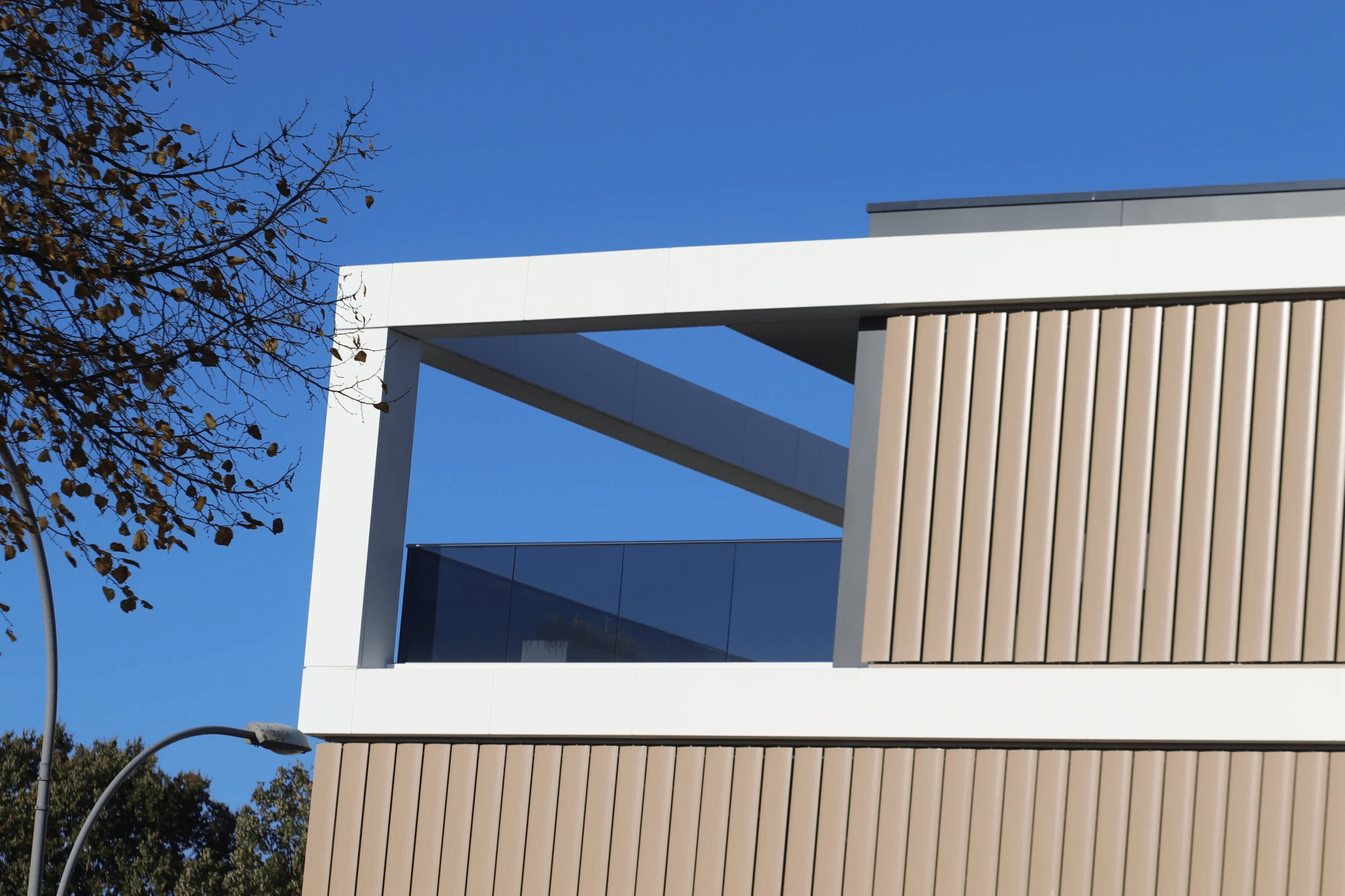 Het uiteindelijke resultaat wijkt nauwelijks af van het origineel ontwerp, aldus de architect. Door de combinatie van lichte en donkere aluminium gevelbekleding heeft het kantoorpand een moderne uitstraling gekregen. De zonwering, gecreëerd door Building Elegance, die op een slimme manier is samengebracht creëert een beleving in combinatie met de lichte aluminium gevelbekleding.